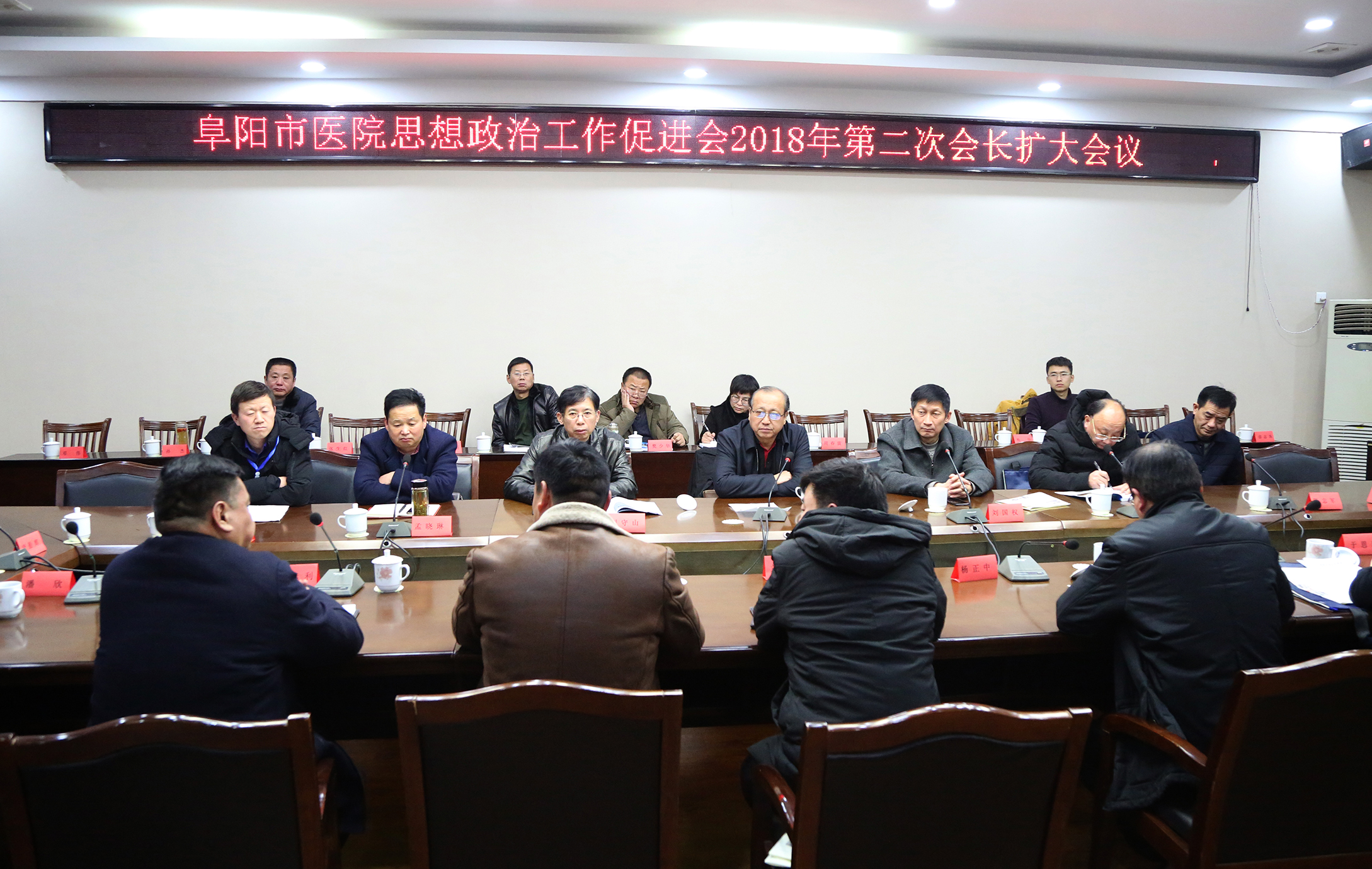 2018年12月14日阜阳市医院思想政治工作促进会在阜南县南山宾馆总台会务中心中会议室召开了2018年第二次会长扩大会议。