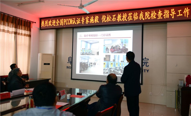 评审组专家首先听取了韩明锋关于阜阳市第二人民医院呼吸与危重症医学科规范化建设情况的汇报,并对相关问题进行了交流与指导。
