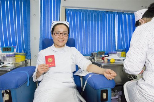 上午8时,医护人员就在外科大楼门前排起队伍,等待献血。其中有刚参加完交接班、准备下夜班的医生护士,也有急着先献血再去工作的医务人员,虽然他们来自不同的岗位,但他们都有一颗热血沸腾的心。