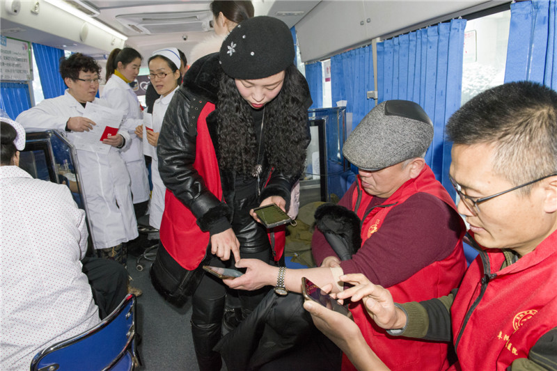 1月10日,阜阳大地银装素裹,冰天雪地。上午8时,阜阳市第二人民医院外科大楼前,停着一辆无偿献血车。车外简直滴水成冰,车内却暖意融融——阜阳市二院青年医务工作者、医务人员志愿者纷纷上车,脱下棉袄,伸出胳膊,排队参加无偿献血……