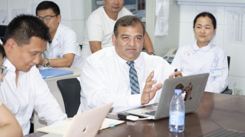 7月15日,阜阳市第二人民医院邀请英国赫尔约克医学院的关节与创伤医学临床专家Raghu Raman(拉古拉曼)教授来院授课指导工作,围绕国际骨关节方面最新成果进行交流,今天他在骨科进行了查房、手术、学术沙龙等活动。