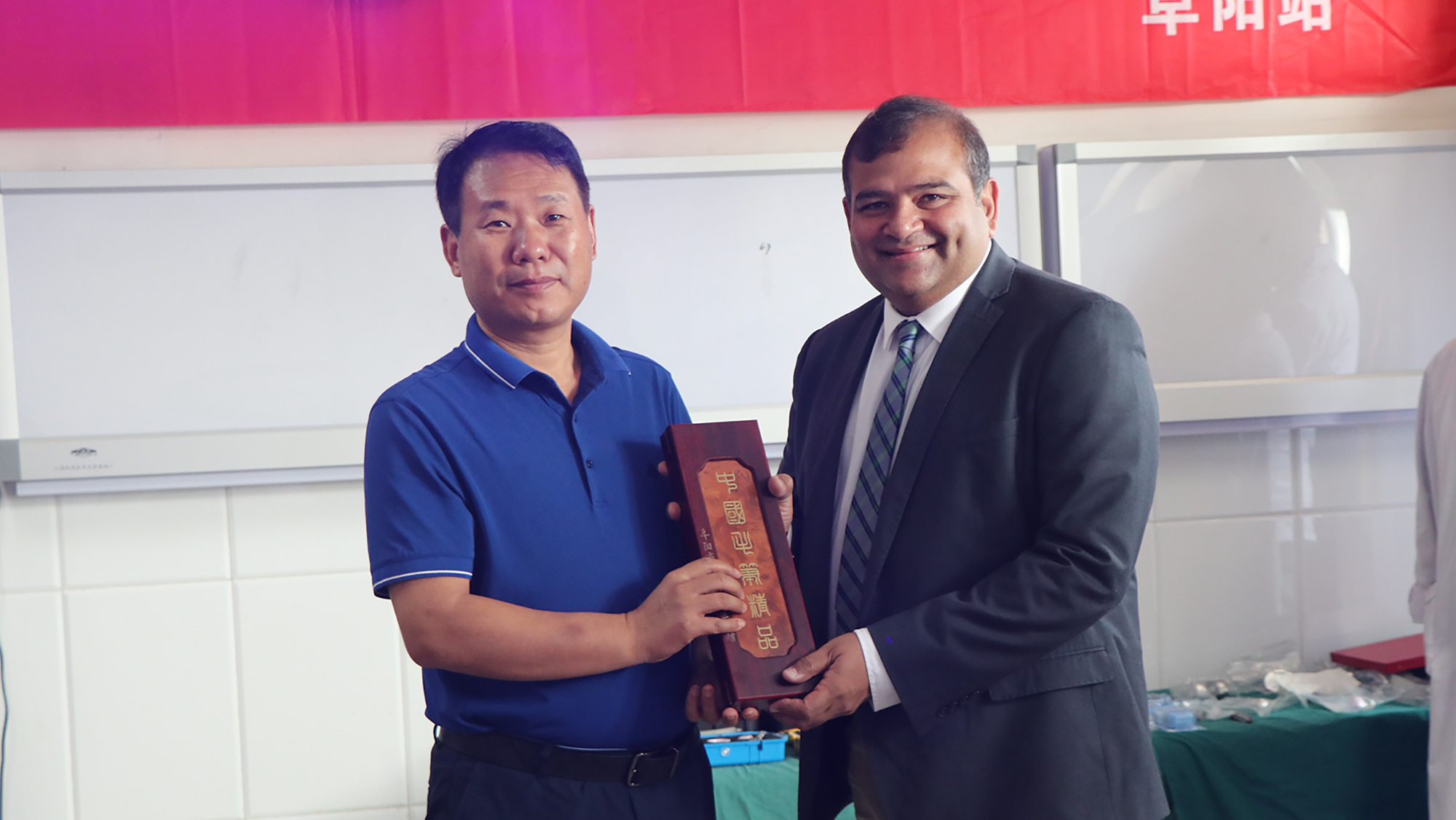 上午,阜阳市第二人民医院为拉古拉曼教授举行了简短的欢迎会,院党委副书记、院长韩明锋,副院长李秀勇与骨科全体医生近30人参加了会议。会上双方进行了亲切友好的座谈,韩明锋向拉古拉曼教授赠送了中国传统工艺笙箫纪念品。
