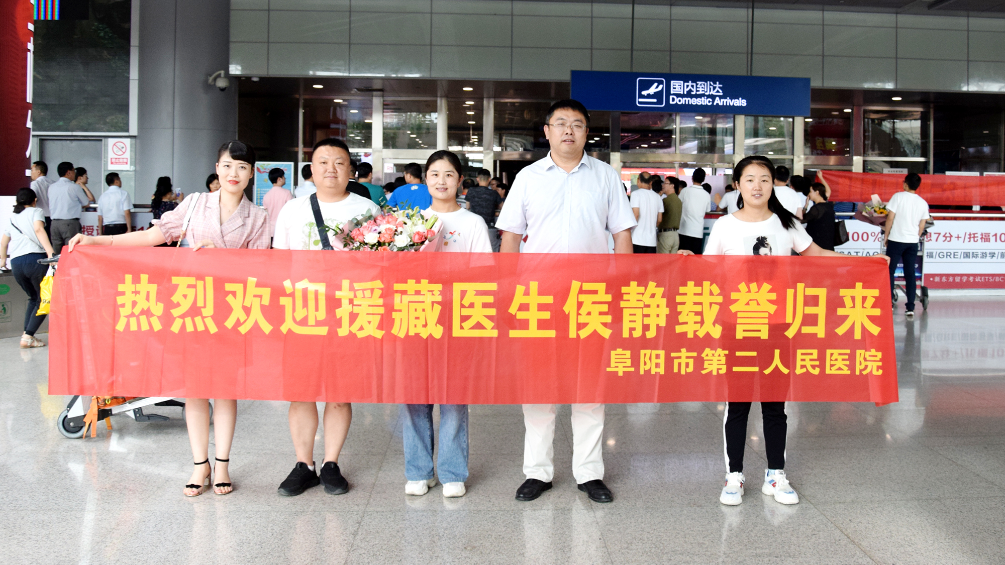 7月16日,安徽省第三批组团式援藏医疗队队员、阜阳市第二人民医院结核病科主治医师侯静圆满完成为期一年的援藏医疗工作返回阜阳,副院长李秀勇及医务科、人事科相关负责人前往合肥机场迎接。