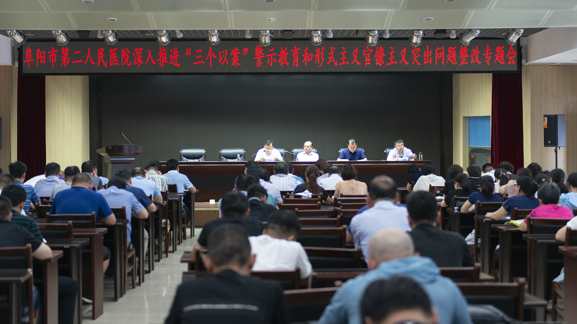 7月31日下午,阜阳市第二人民医院“三个以案”警示教育与形式主义官僚主义突出问题整改落实工作部署会在行政楼五楼召开,院领导班子成员、中层干部及各党支部、团委负责人200余人参加了会议。院纪委书记管海新主持会议并讲话。