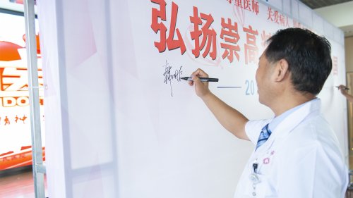 活动中,百余名医生拿起水笔,在签名墙上郑重留下自己的名字,并纷纷表示,将时刻践行誓词,承诺将努力做到廉洁行医、诚实守信、爱岗敬业、无私奉献,永远作人民健康的忠诚卫士。
