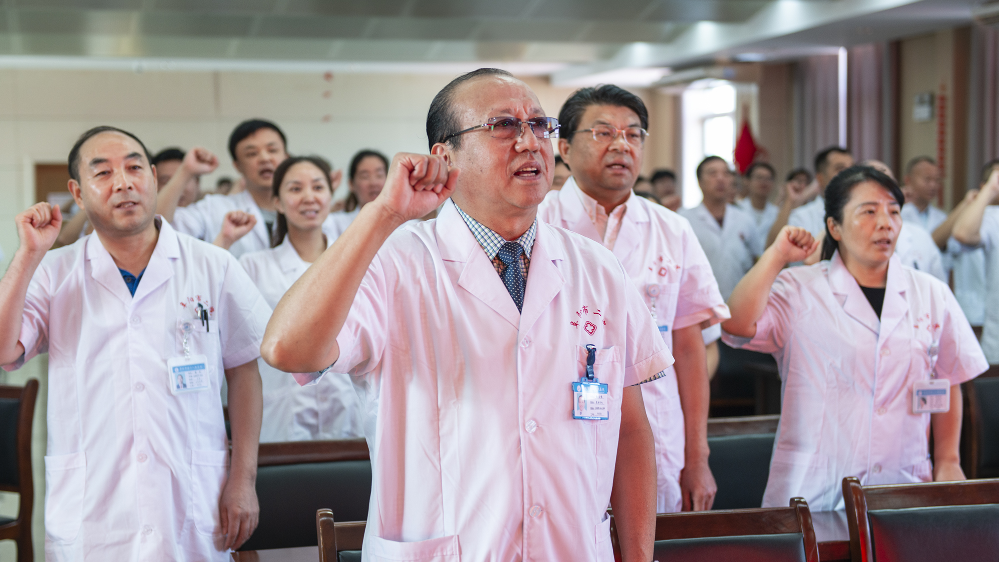 随后,韩明锋院长带领全体参会人员重温希波克拉底誓言。庄严的宣誓,震撼着每一位“二院人”,让大家重温从医初心,深刻感受到自己所从事这份职业的神圣感、使命感和责任感。