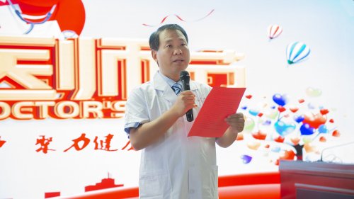 会上,韩明锋院长发表了热情洋溢的致辞,他代表领导班子成员向长年奋战在一线的全院医师们致以节日的问候!他表示,在医院全体干部职工的共同努力下,医院在服务患者、服务社会以及在执行上级任务方面取得了显著成绩。建院以来,医院由小到大,由弱到强,这些成绩的取得源自于全院职工的无私奉献,源自于患者的信任与支持,更与日夜战斗在救死扶伤第一线的医师们密不可分。他希望全体医师能够刻苦钻研,不断学习,提升能力;在临床工作中精心配合、团结奋战,同时要加强自身思想道德修养,弘扬高尚医德。