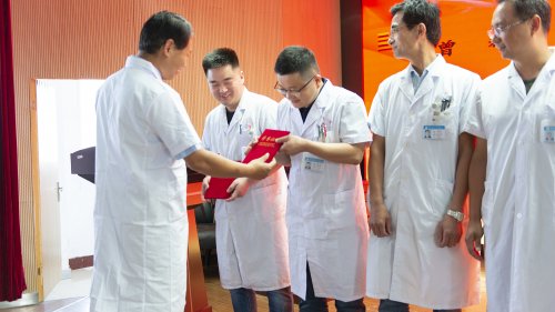 为迎接“中国医师节”的到来,医院评选出20名来自临床一线的优秀医生,院领导为他们颁发证书并勉励他们再接再厉,在工作中取得更大的进步。