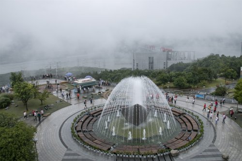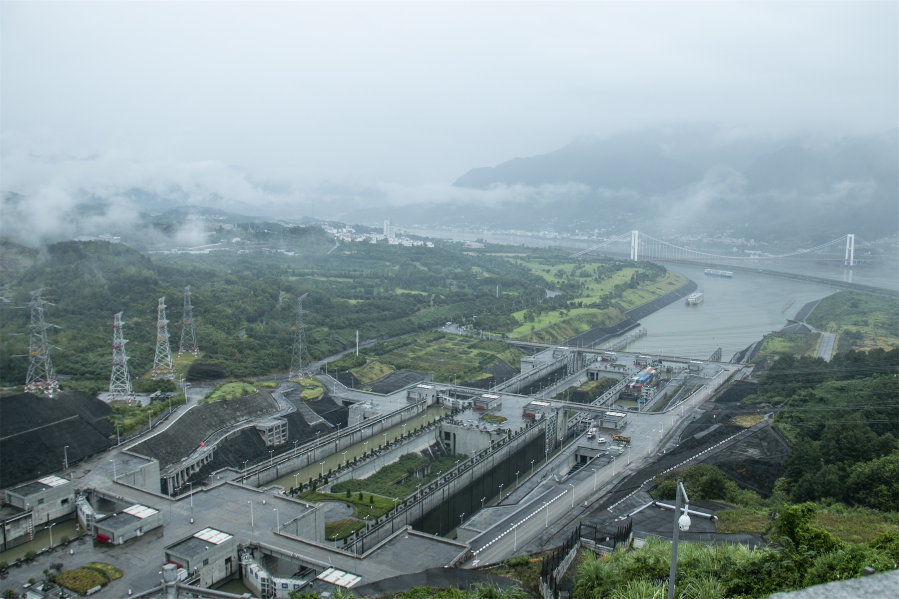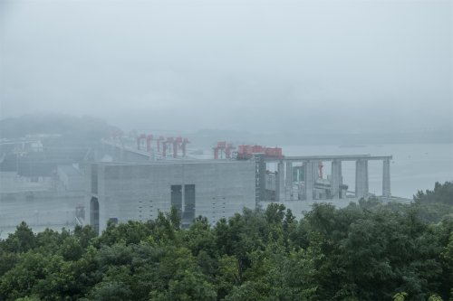 坛子岭 雨雾中的三峡大坝 长江三峡五级船闸
