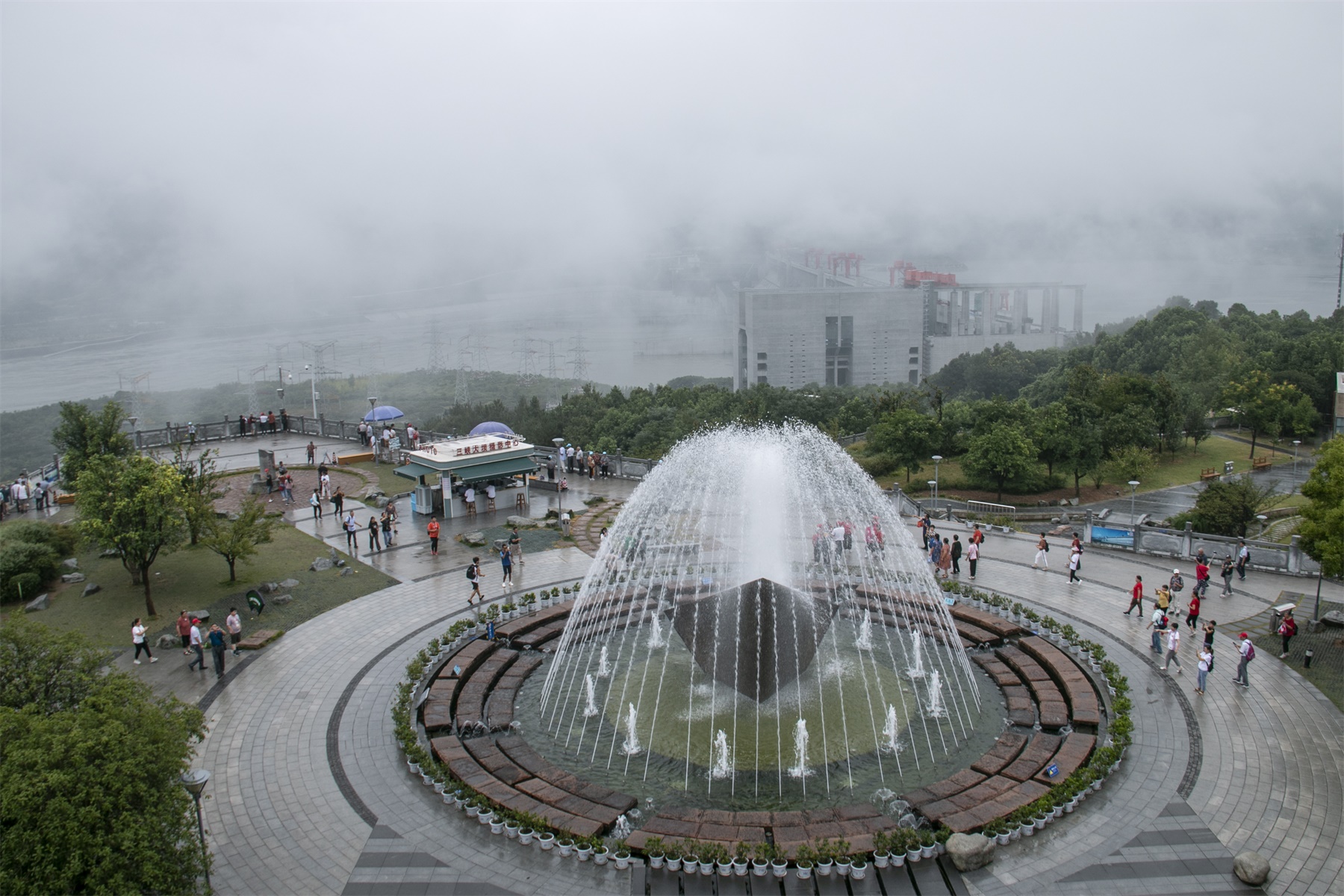 雨雾中的三峡大坝