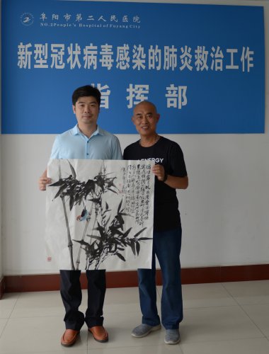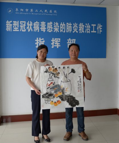 5月31日下午,阜阳市美术家协会文艺志愿服务队一行8人,走进市第二人民医院现场挥毫作画,致谢和歌颂该院及广大医务人员的抗疫精神。