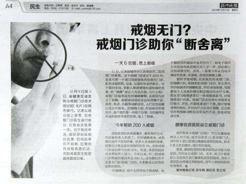 我市有多少戒烟门诊呢?市卫生健康委相关人员介绍,我市目前有12家戒烟门诊,其中有6家已经通过健康促进医院验收,其余6家正在创建中,预计明年验收。