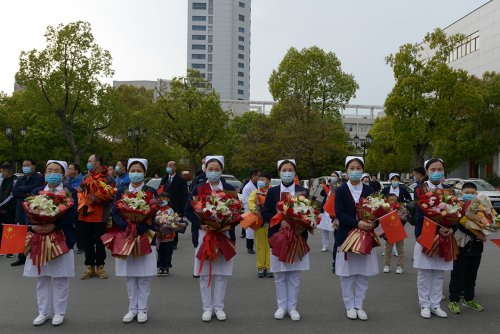 4月1日,省政府副省长、市委书记杨光荣,市委副书记、市长孙正东等与我市第三批援鄂医疗队队员合影