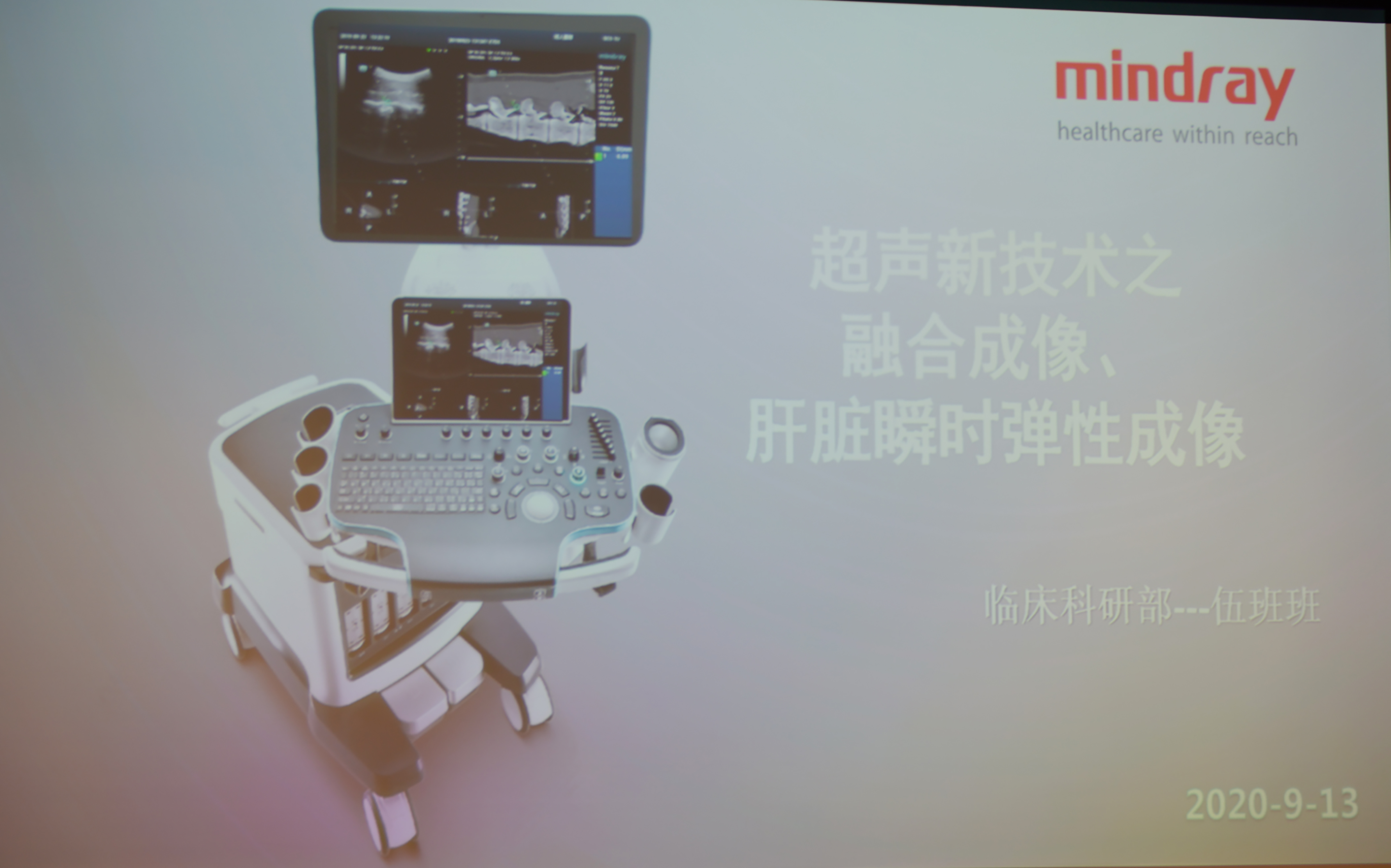 换届改选会议后,新一届委员会邀请深圳迈瑞公司科研部伍班班博士举行了全市首场高端超声影像新技术专题学术讲座——超声、CT、核磁共振融合成像。