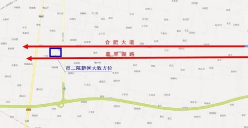 阜阳二院新区位于颍州区合肥大道南侧、朝阳街西侧、翡翠湖路北侧、阜焦路东侧。