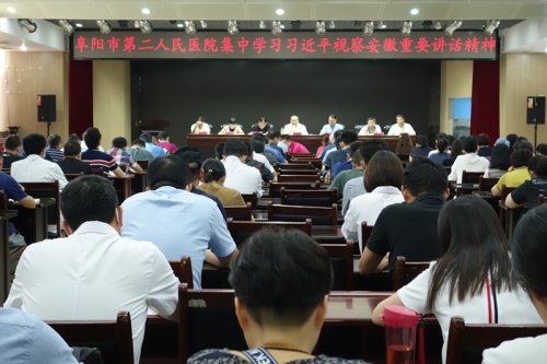 9月14日下午,阜阳市第二人民医院召开专题会议,集中学习了习近平视察安徽重要讲话精神和副省长、市委书记杨光荣在全市领导干部专题研讨班开班时的辅导报告,院党委书记丰效寺,党委副书记、院长韩明锋,纪委书记管海新,副院长李秀勇,党委委员李龙海、祖大玲、麻宏亮,以及全院中层干部170余人参加。