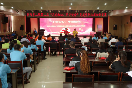 为巩固“不忘初心、牢记使命”主题教育和深化“三个以案”警示教育成果,阜阳市第二人民医院于9月23日下午在行政楼五楼举办了第二届“不忘初心、牢记使命”党建党纪法规知识竞赛。院党政领导班子成员与全院100余名党员、预备党员及入党积极份子参加了此次比赛。