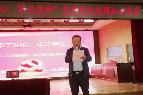 赛前,党委书记丰效寺发表了热情洋溢的致辞,他指出此次知识竞赛既是我院开展联系范亚平案“防微杜渐警钟长鸣”廉政活动月的一项具体举措,也是我们贯彻落实新时代公立医院加强党的建设、积极探索“不忘初心、牢记使命”常态化的一项创新,目的是教育和引导全院广大党员干部认真学习和把握党纪法规的精神实质,把纪律和规矩挺在前面,营造深入学习贯彻习近平新时代中国特色社会主义思想和全面从严治党指示批示精神的浓厚氛围,一体推动“三不”机制的建立。最后丰书记代表院党委预祝本次比赛取得圆满成功。