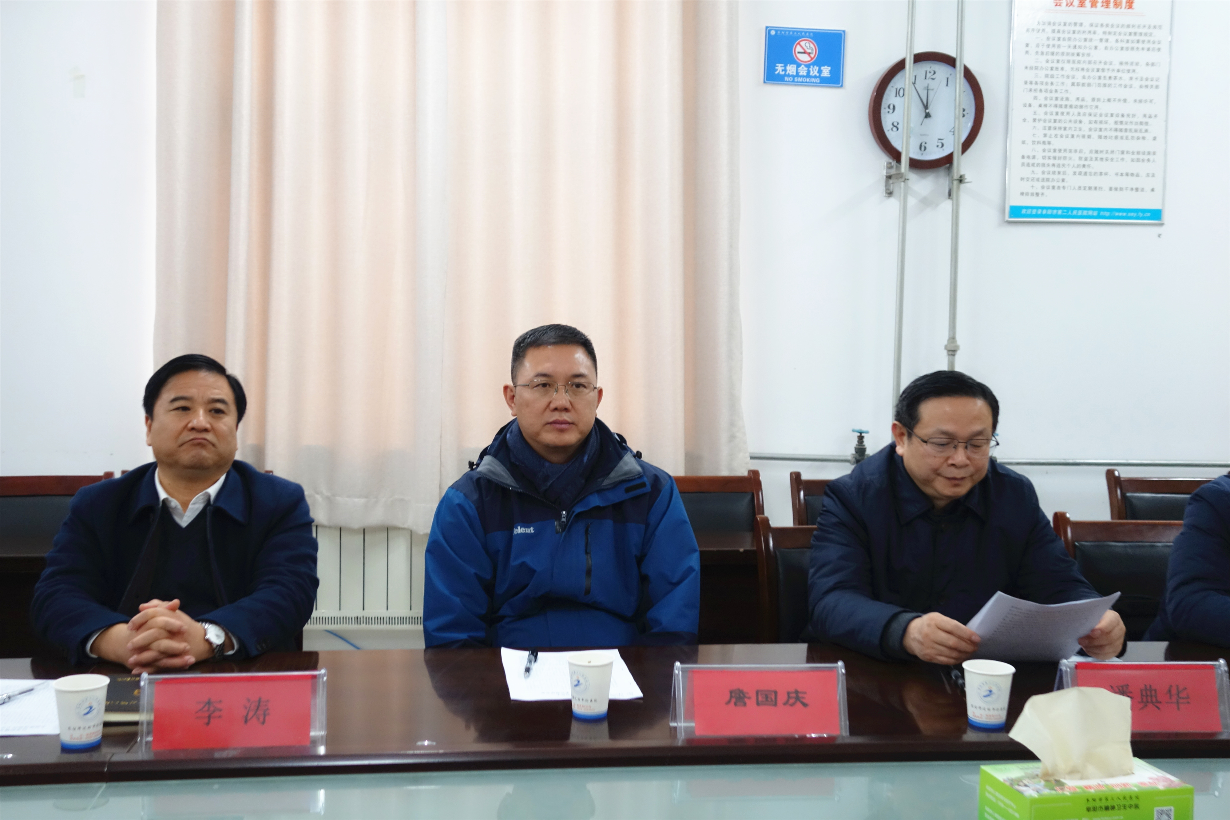 12月23日上午,省委非公工委办公室主任、一级调研员詹国庆一行到阜阳市二院调研基层党建工作。市委组织部常务副部长潘典华,市直工委书记李涛,市委组织部二级调研员、部务会成员关宏,市党联办主任、市委组织部研究室主任彭海涛陪同调研。阜阳市二院党委书记丰效寺,院党委副书记、院长韩明锋参加调研。