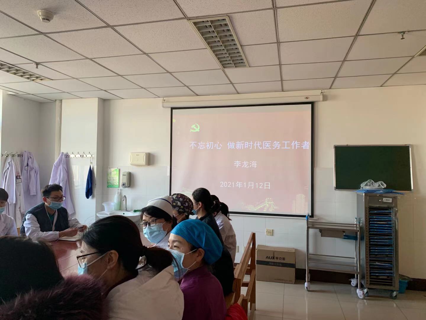 会上,李龙海进行了《不忘初心,做新时代医务工作者》的精彩授课,讲述了共产党人的“根”和“魂”。他强调,作为一名共产党员要积极投身到全心全意为人民服务之中,立足本职,充分发挥一名党员的先锋模范作用,着力解决群众看病就医过程的操心事、烦心事,不断提高群众就医获得感、幸福感。授课内容选取了贴近工作生活的真实案例,以小见大,极大的调动了大家的学习积极性。课后李委员又与支部党员们谈信仰、谈理想、谈工作、谈对医院发展的想法。此次讲党课不仅是一次主题教育,更是一次思想的洗礼。大家纷纷表示,做一名合格党员,要不忘初心,砥砺前行,加强党性修养,践行党的宗旨,将主题教育和实际工作有效结合起来,推动主题教育往深里走、往心里走、往实里走,为医院各项工作提供坚强的组织动力和思想保障,立足本职,扎扎实实工作,为医院的发展建设贡献自己的力量。