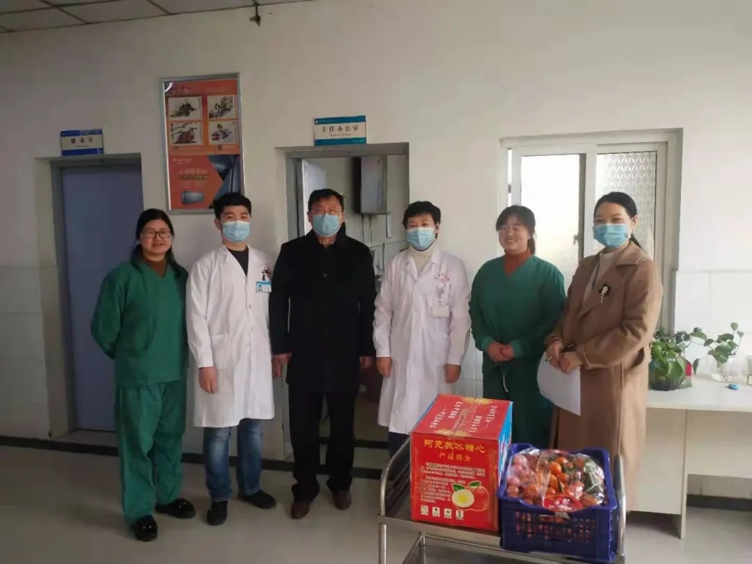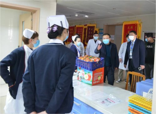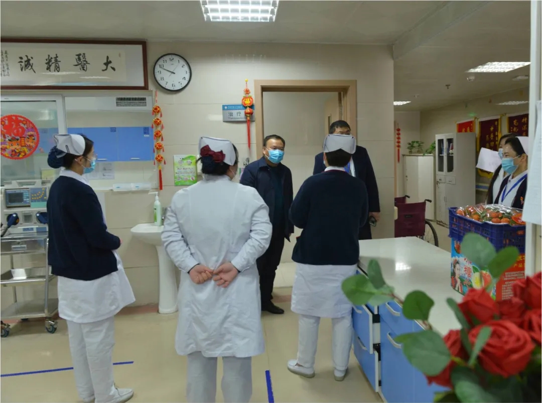 农历大年三十上午,院党委书记丰效寺,党委副书记、院长韩明锋、纪委书记管海新、副院长李秀勇与党委委员李龙海、麻宏亮,以及有关职能部门负责人走访一线,慰问值班医务人员。