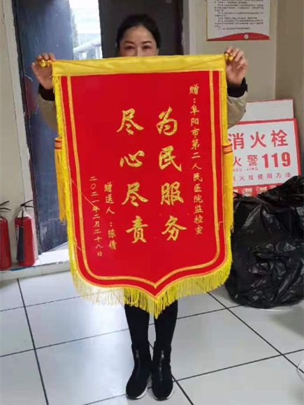 第一时间,陈女士十分激动地对该院保卫科监控室值班人员说,“真急死我了,本以为找不到了,没想到在这么短的时间内就找了,非常感谢!”并在当天下午送来了锦旗,表达了自己的感激之情。