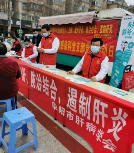 为了帮助人们更加正确的认识我们的肝脏,加强对肝炎肝病相关知识的普及,在阜阳市肝病学会、阜阳市感染病学会的支持下,阜阳市第二人民医院肝病科医护人员深入阜阳市京九街道社区,向基层市民宣传肝病防治知识,同时针对特殊群体,进行丙肝肝炎筛查。