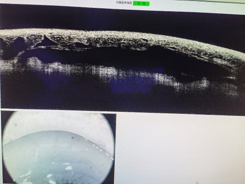 患者李某某,女,现年74岁,农民,界首市代桥镇王寨村解老庄人,2年前无明显诱因下出现双眼视物模糊,休息后不能自行缓解。3天前因视物模糊加重,于3月22日到阜阳市第二人民医院眼科就诊。右眼视盘OCT示:盘周神经纤维变薄;前房角镜检查:双眼窄角,初步诊断为双眼慢性闭角型青光眼。