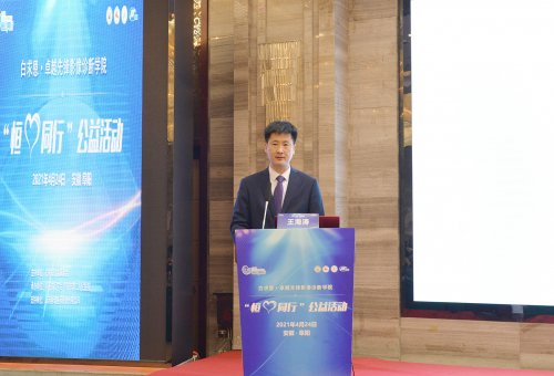 王海涛主持开幕式,并从卢光明教授手中接过‘恒心同行’公益活动爱心捐赠牌。