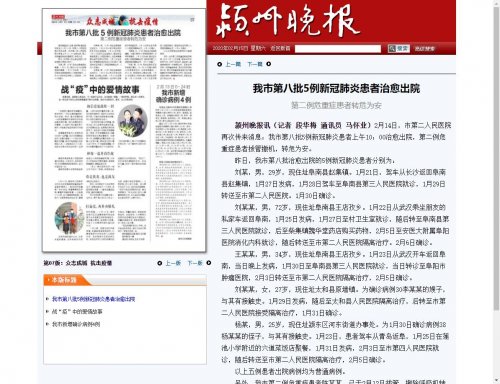 昨日,我市第八批治愈出院的5例新冠肺炎患者分别为: