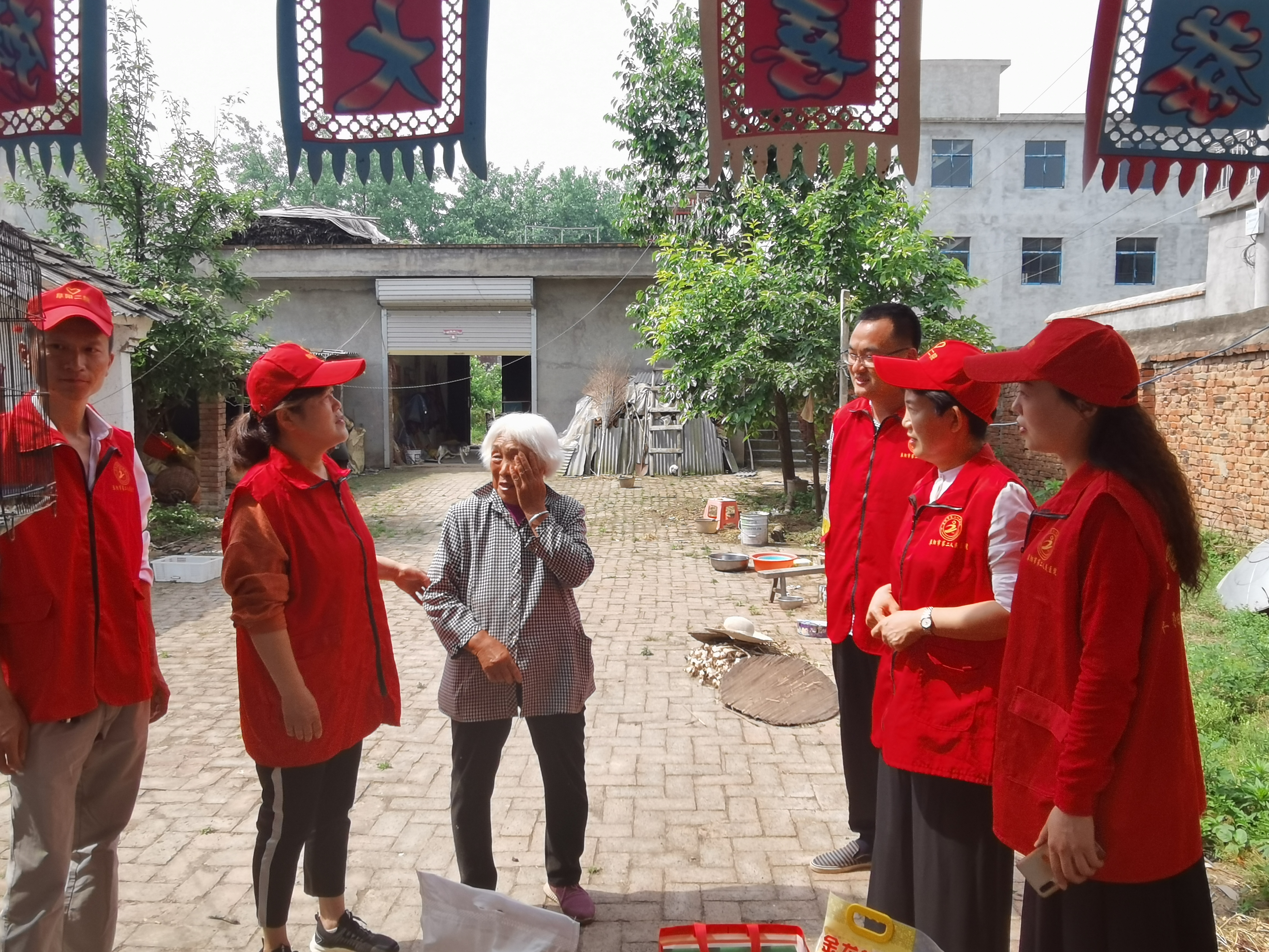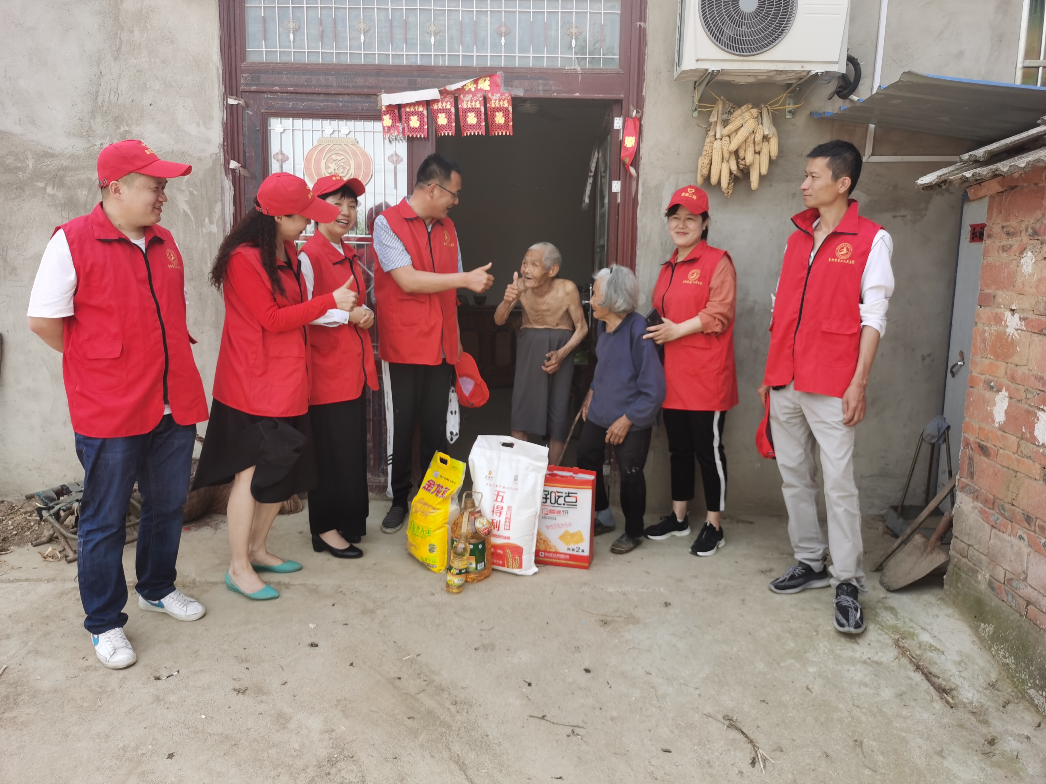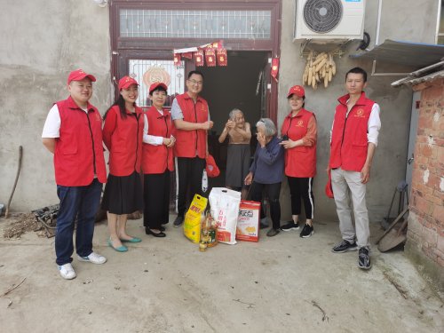 为纪念第74个世界红十字日,弘扬“人道、博爱、奉献”的奉献精神,5月9日上午,阜阳市二院办公室主任冯侠、工会主席杨凌、社工部副主任孔平平一行,在市二院驻村扶贫干部刘虎副院长的带领下来到临泉县陶老乡长集村,开展扶贫帮困、送温暖献爱心活动。