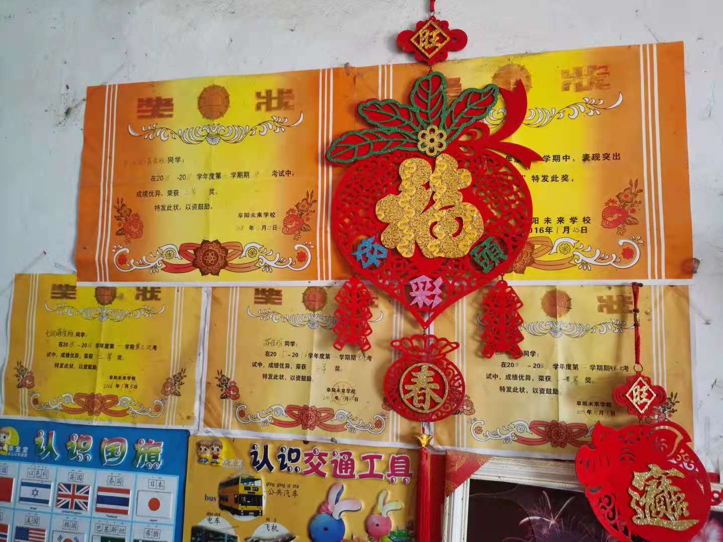 老人指着满墙的奖状欣慰的说:“是的,感谢政府让我3个孙女能够顺利上学,孙女们很努力,大孙女今年要参加高考,都是政府让我们家看到了希望,让我对生活又有了新的奔头了。”
