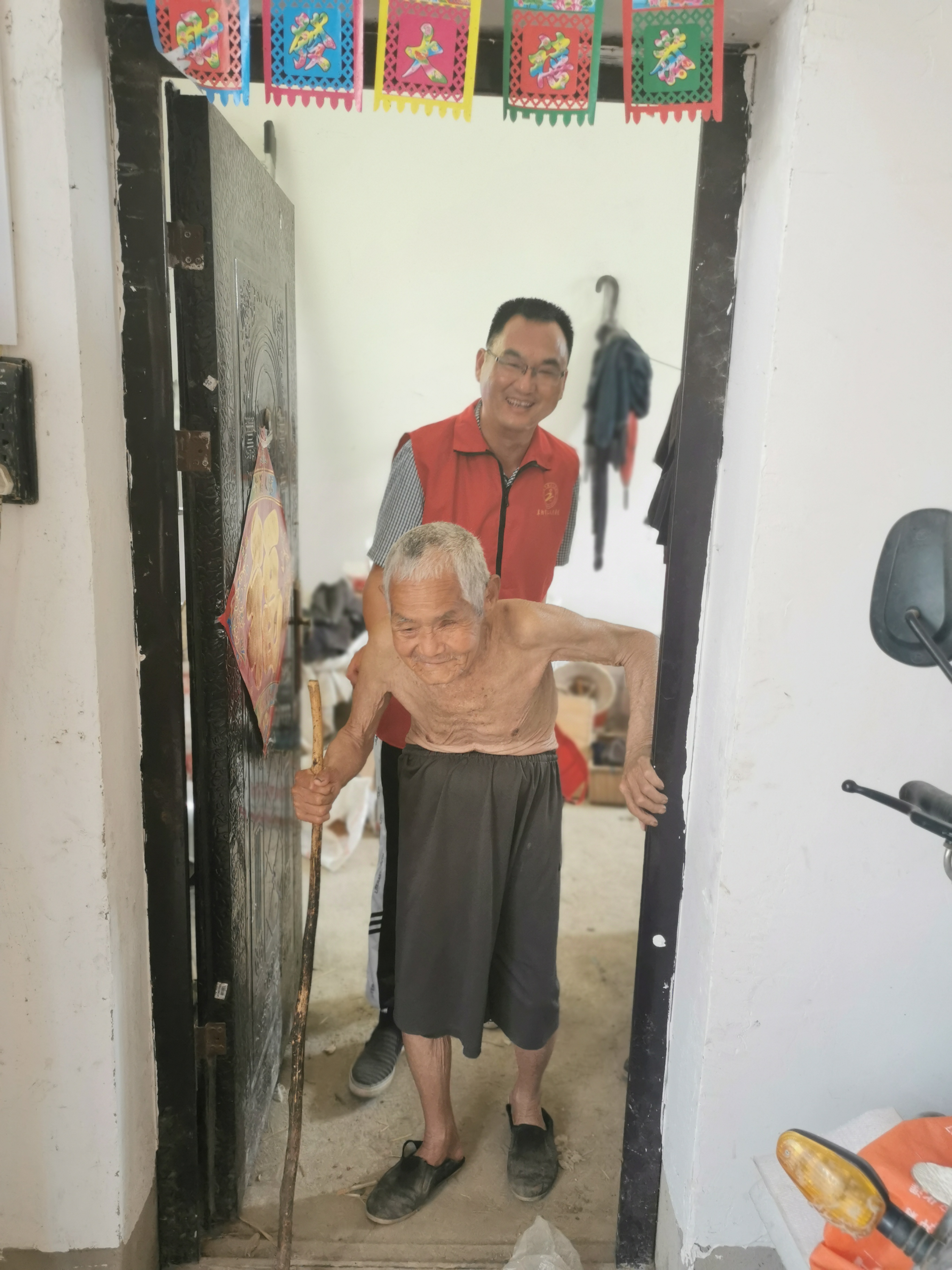 图为刘院长贴心搀扶老人。