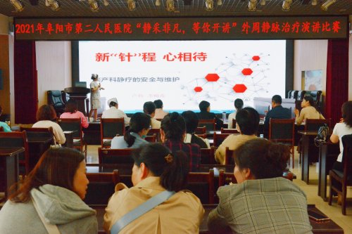 5月11日,阜阳市二院组织开展外周静脉输液治疗“‘静’采非凡,等您开讲”的演讲比赛。护士们以《新“针”程,心相待》、《羞答答的“栓子”,静悄悄的“开”》、《“静”益求精,学无止“静”》等为题,来自29个临床科室的护理骨干,通过精彩的业务演讲,从不同角度展示了护理人员的职业技能,起到练兵比武的作用,促进了全院护理业务技能的提升。
