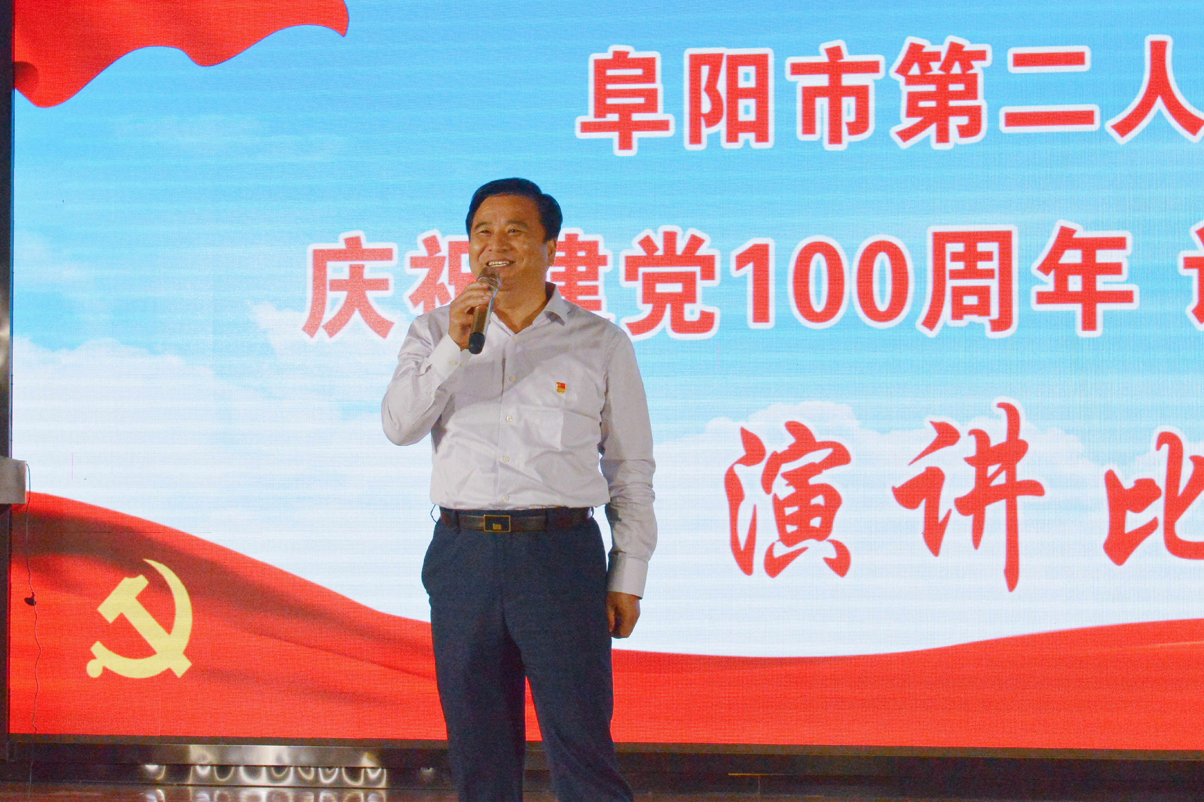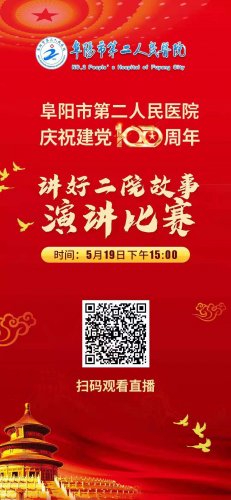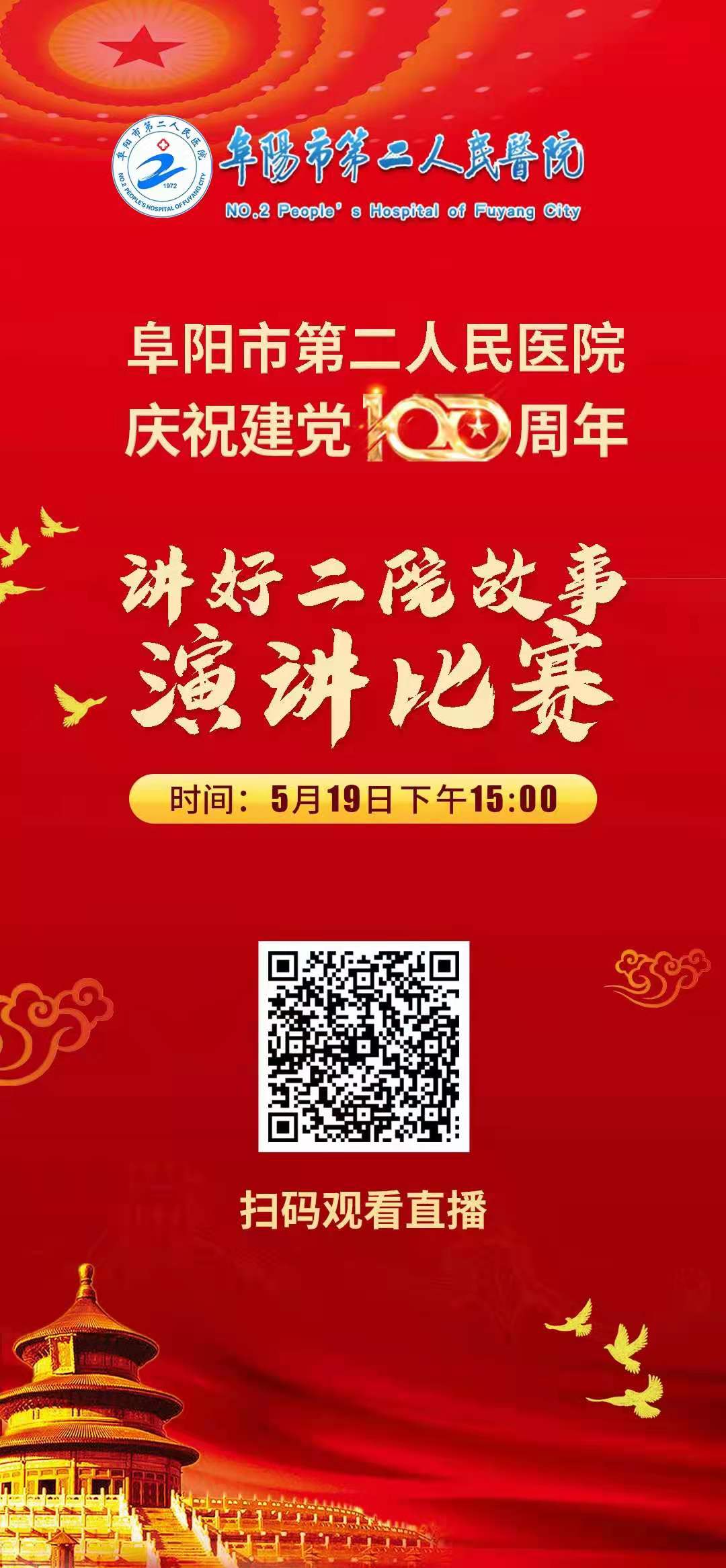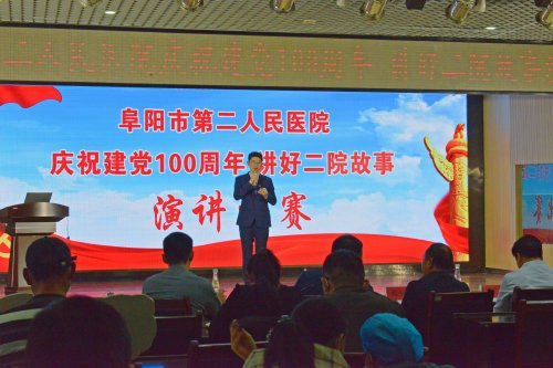 5月19日下午,阜阳市二院庆祝建党100周年,讲好二院故事演讲比赛成功举办。来自全院各有关科室和支部的10位选手登台演讲,他们以真事述感受、用真情表决心,展现了新时代医务工作者昂扬向上的精神风貌和奋发有为的精神状态。阜阳市直工委书记李涛,市社会科学联合会主席、市委宣传部副部长、市委讲师团团长燕少红,市卫健委党组成员、副主任孙芳,市医院党委副主记、纪委书记、工会主席刘国权,市三院党委委员、副院长韩笑笑,以及市二院党委书记丰效寺,党委副书记、院长韩明锋作为评委出席本次演讲比赛。医院各科室和支部观众代表近100人在现场观看了比赛,此次比赛还通过网络线上进行同步现场直播,吸引了线上6.53万人观赏。