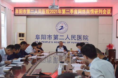 5月14日,阜阳市第二人民医院召开2021年第二季度网络舆情分析研判会议,院党委班子成员对第二季度舆情情况进行分析研判。
