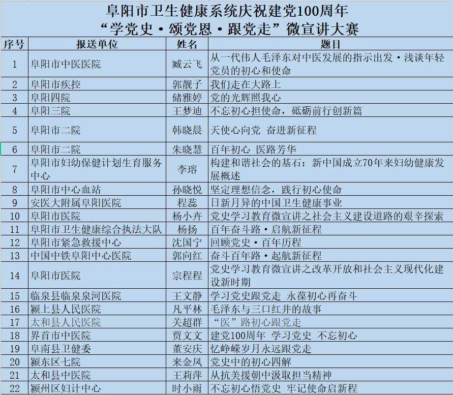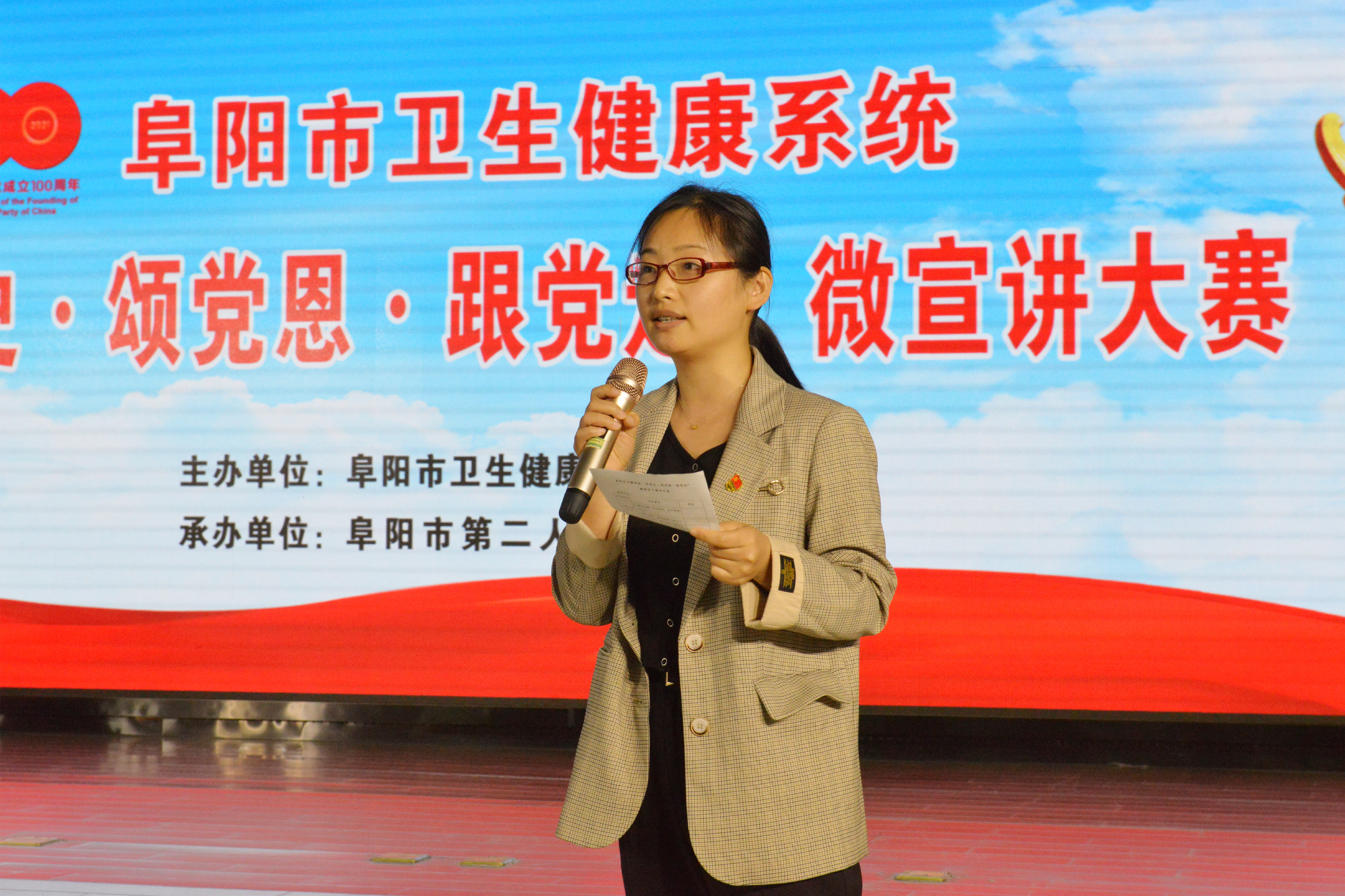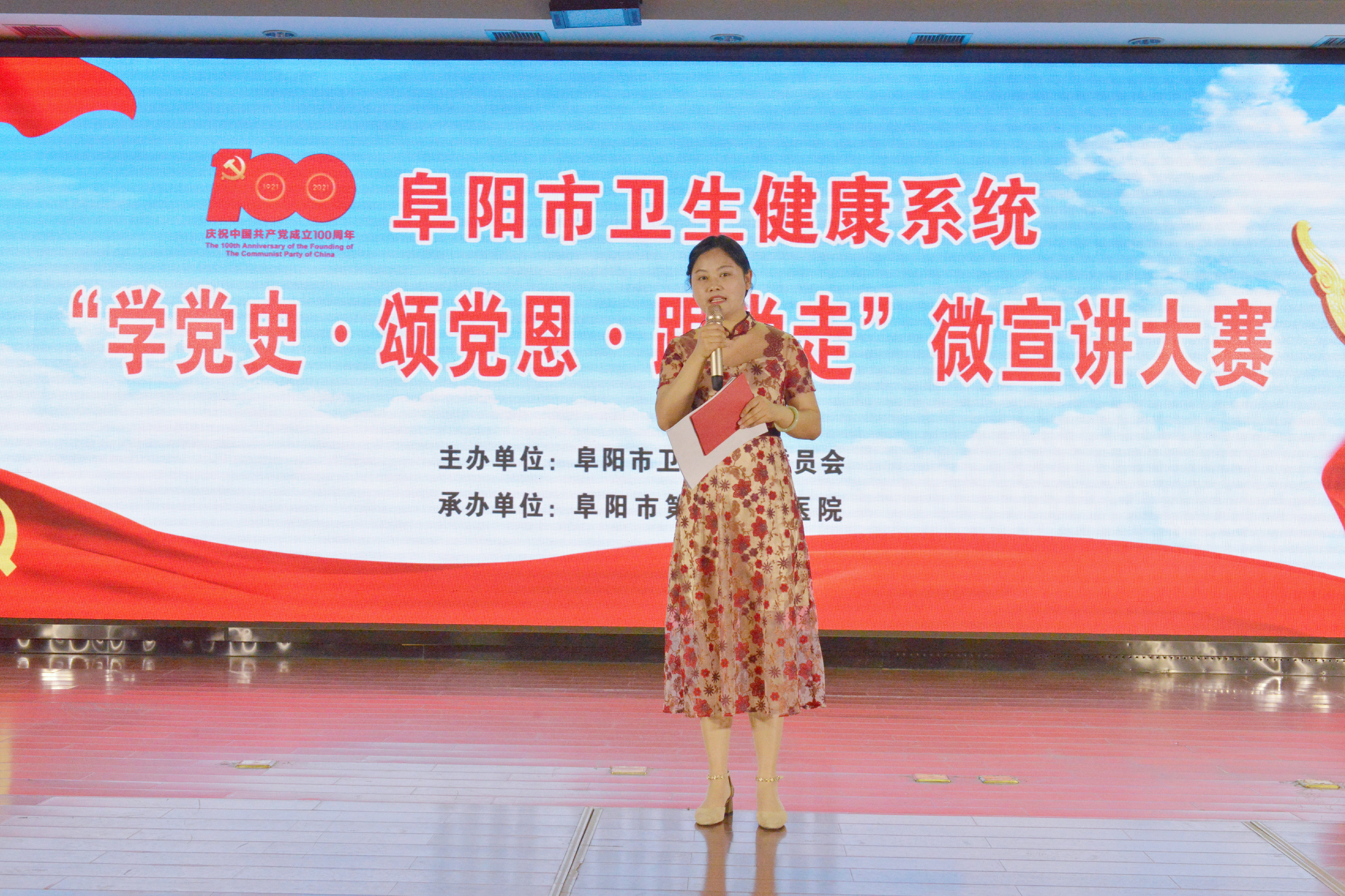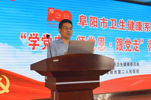 为热烈庆祝中国共产党成立100周年,推进卫生健康系统党史学习教育深入开展,5月26日,由阜阳市卫生健康委员会主办,由市第二人民医院承办的全市卫生健康系统庆祝建党100周年“学党史·颂党恩·跟党走”微宣讲大赛成功举办。