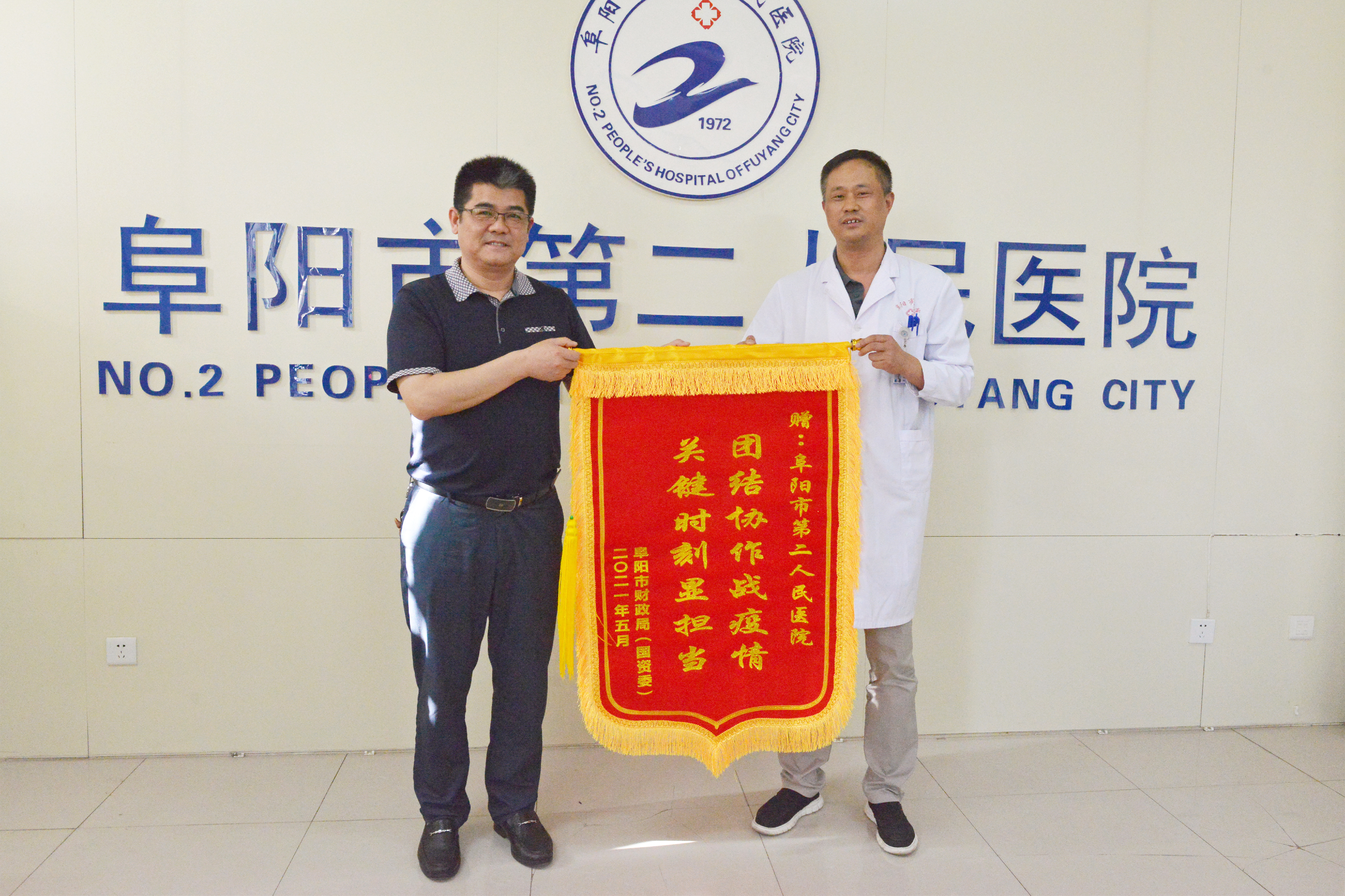 日前,阜阳市财政局有关部门负责人来到市第二人民医院,送来一面锦旗和一封感谢信,以感谢市二院在有限时间内,出色完成了近200名考生的新冠核酸检测任务,保证了阜阳考区1000多名考生顺利参加全国会计专业技术资格考试。