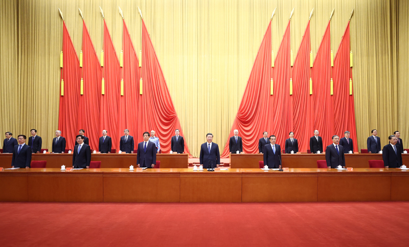 上午10时,大会开始。全场起立,高唱国歌