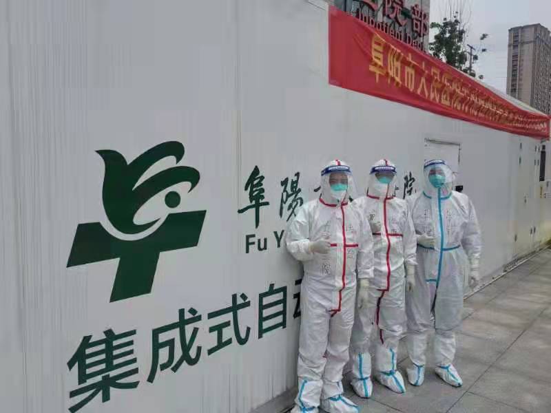 据了解,阜阳市第二人民医院4名核酸检测人员在为期14天逆行出征日子内,在当地政府和卫健部门的统一领导下,在六安市裕安区保健院移动式方舱核酸检测实验室,与其他前往六安支援的同事们一起,不分昼夜,24小时三班轮换紧张地工作,14天共完成15324管(113993人)检测任务。为尽可能地减少出舱次数,在进入核酸检测实验室前,在保证安全的情况下,他们只能减少食物和水的摄入,往往下班出舱后,他们都会全身湿透。据回忆,支援期间,有一次方舱空调系统坏了,室内温度很快升到了50多摄氏度,但他们还是坚持咬送牙将试验做完才离开,他们忘我的奉献精神和科学严谨的工作作风,受到了六安市党政领导和人民群众的广泛好评。