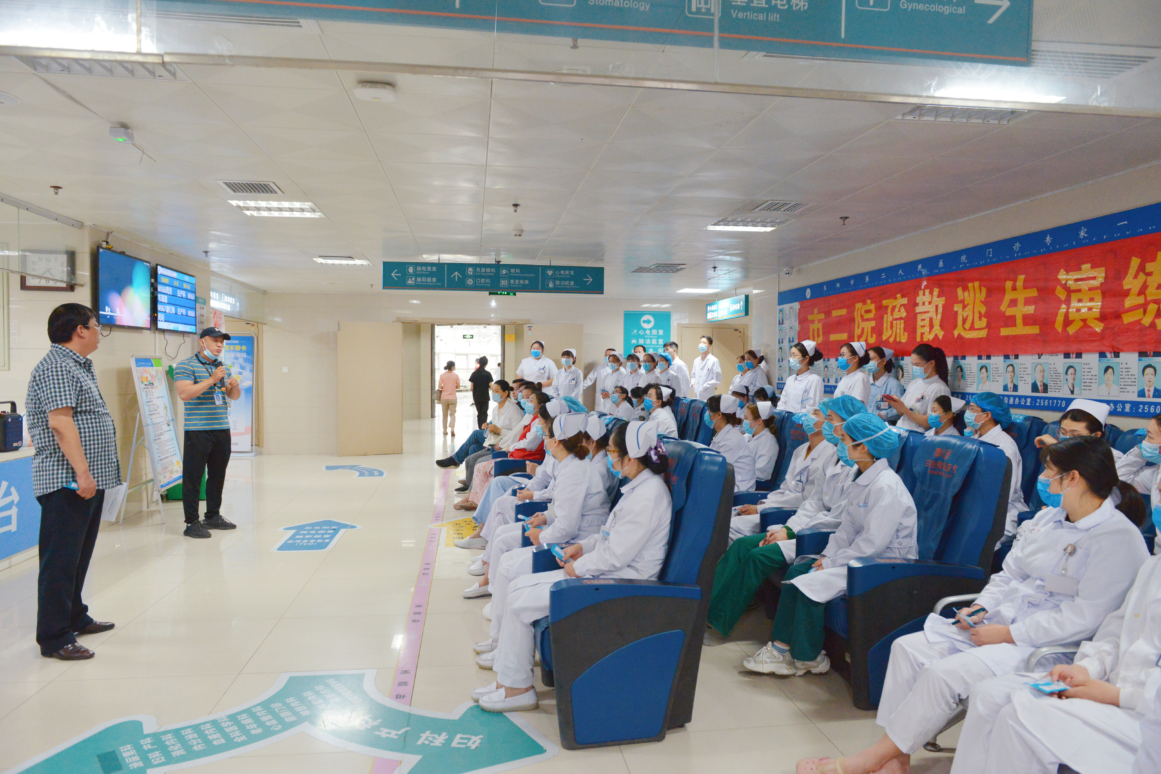 为进一步增强医护人员消防安全意识,掌握消防安全基础知识和基本技能,提高突发火灾的应急处置能力,在遇到突然火灾情况时,能及时、迅速的控制火情,有序组织人员疏散撤离,保障患者及医护人员的生命安全,6月9日下午,阜阳市第二人民医院在门诊部二楼由保卫科和综治办联合举行了一场消防疏散演练,全院各临床科室及职能科室相关人员100余人参加。