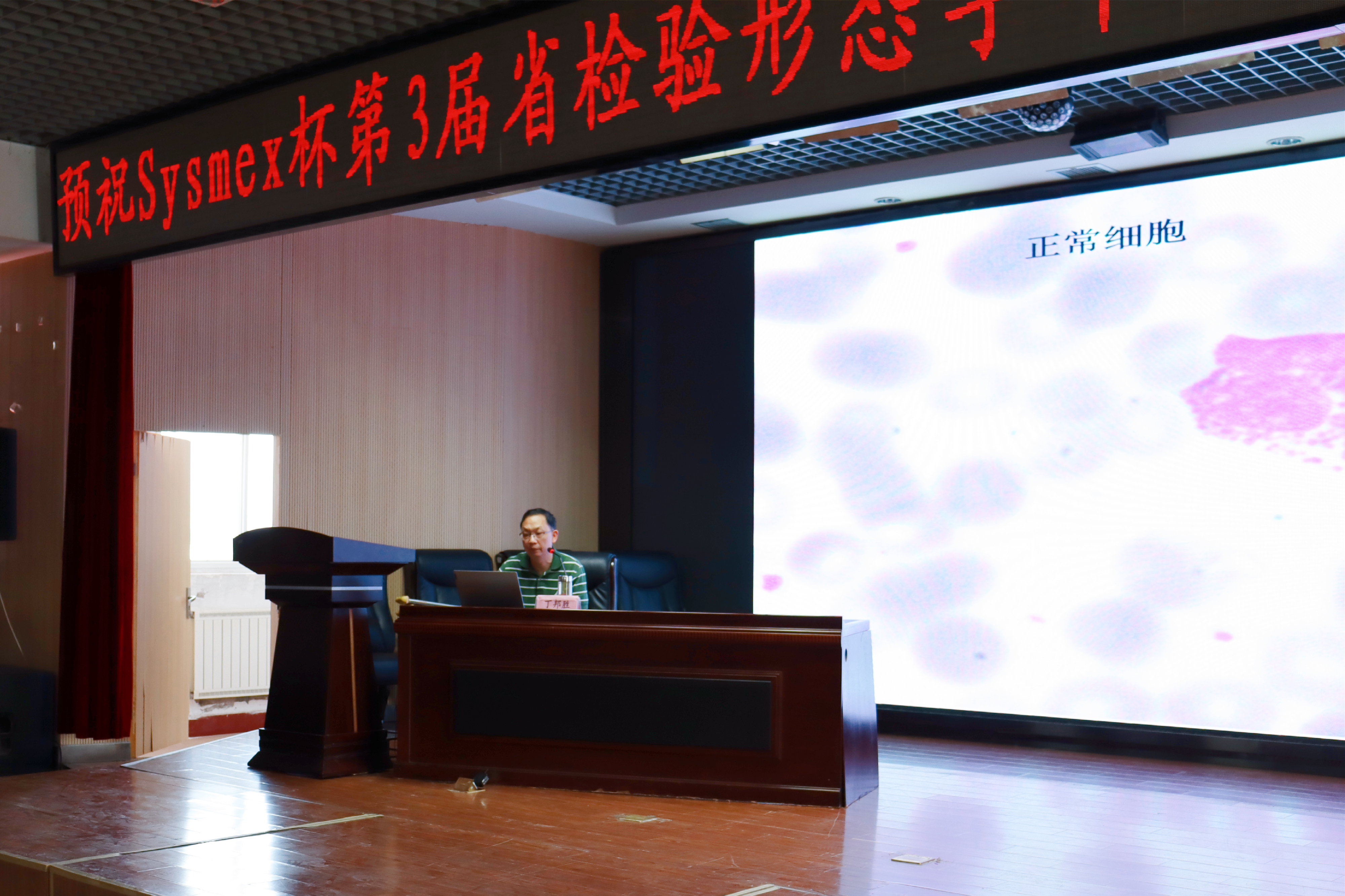 比赛开始前,来自中国科技大学附属第一医院形态学专家丁邦胜进行授课指导,他以《细说形态学》为题,详细介绍了细胞及各组成部分的显微结构和亚显微结构,并用正式案例讲解细胞形态学检验的临床应用。