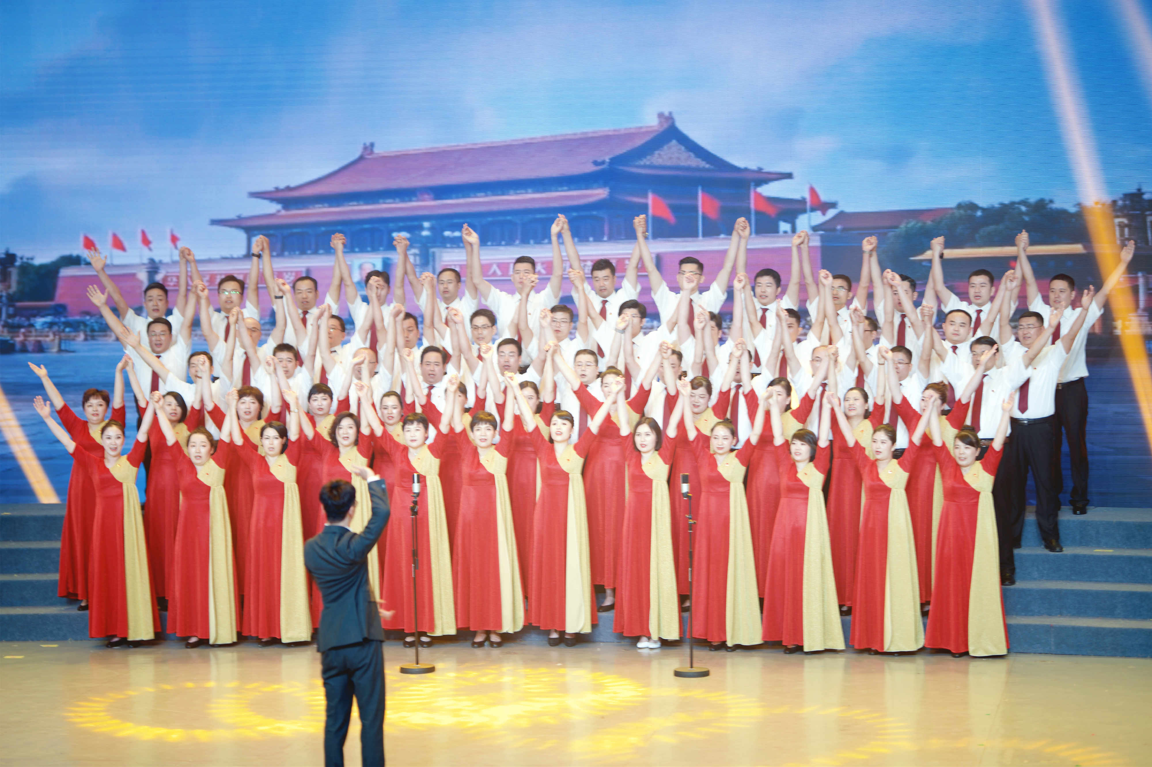最后,演出活动在大合唱《团结就是力量》、《没有共产党就没有新中国》中圆满落幕。