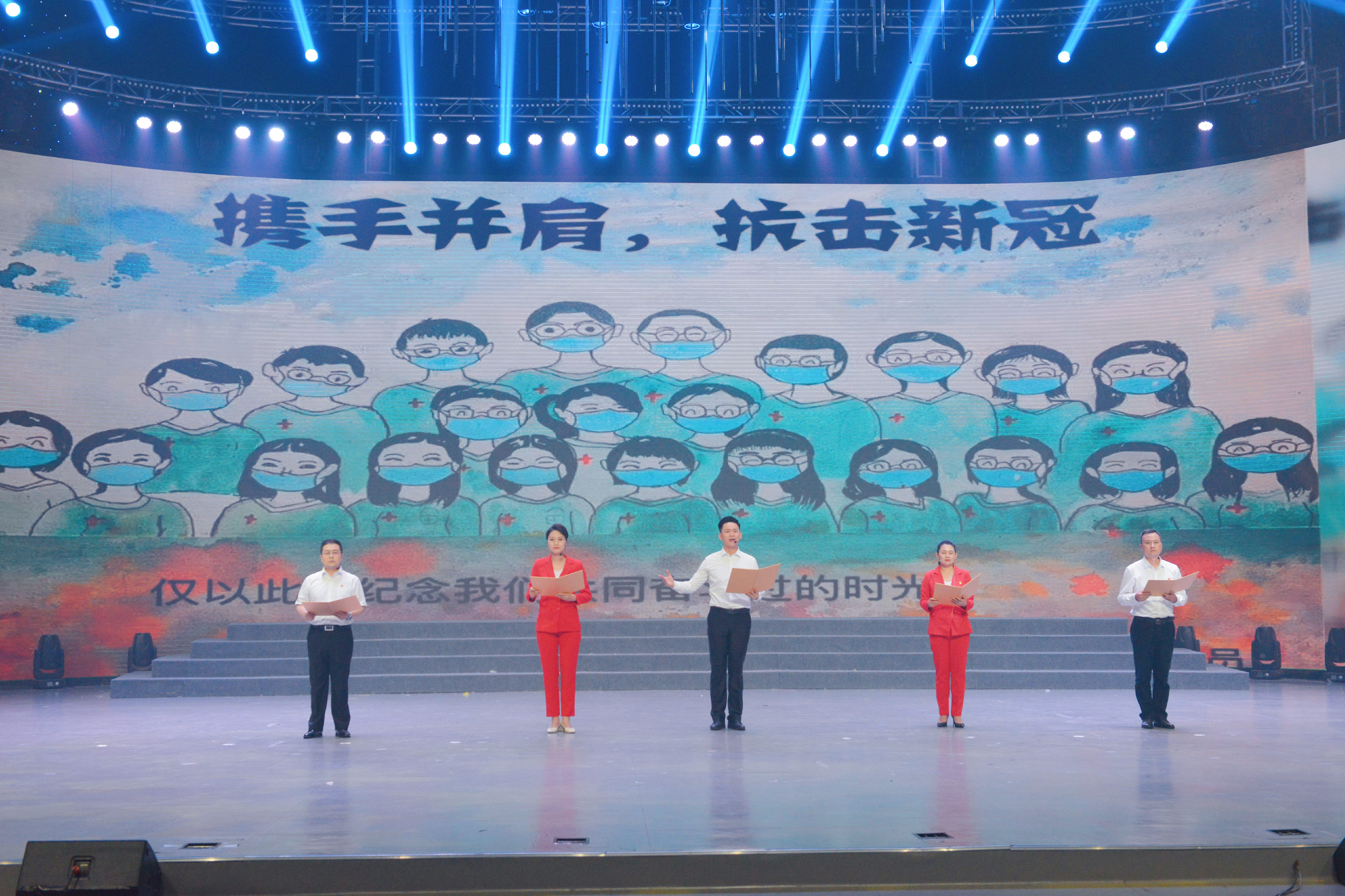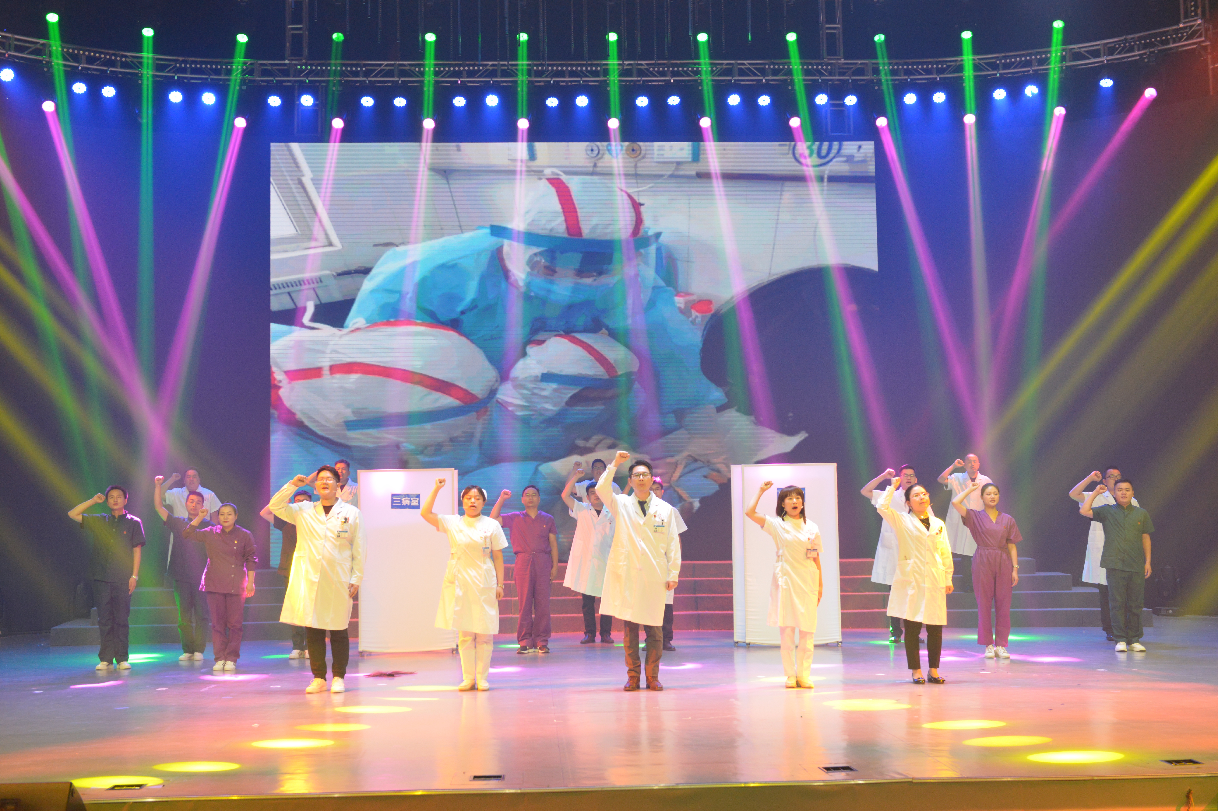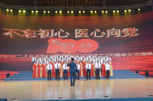 演出前,丰效寺在致辞中表示,党的百年征程,波澜壮阔,百年初心,历久弥坚,从播下革命火种的小小红船,到领航复兴伟业的巍巍巨轮,中国共产党用一个世纪铸就了中国传奇,让全国人民实现小康生活、对美好未来充满期盼和希冀!伴随着党的成长、发展和壮大,市第二人民医院自建院近半个世纪以来,风雨五十载,在一代代二院人的锐意进取、无私奉献、辛勤耕耘下,从传染病“大专科、小综合”发展成为以“感染病强专科和以各学科大综合”为特色的三级甲等医院,特别是在2020年新冠肺炎疫情大战大考中,医院作为全市新冠肺炎定点收治医院和全省四大重症、危重症救治基地医院之一,充分发挥了党建引领作用,展现了担当作为,成功实现市委、市政府提出的全收治、全治愈“两全一无”目标,让党旗在抗疫一线高高飘扬。他希望全院广大干部职工,珍惜现在的大好机遇,认识自身的不足与差距,在新一届班子的领导下,秉承“诚信、精业、博学、创新”的院训,充分发挥区位优势,同舟共济,开拓创新,进一步加强医院内涵建设,把二院打造成为“健康门类齐全、学科特色鲜明、人文气息浓厚、环境舒适优美”的区域性公共卫生临床中心,努力开创二院更加美好的明天,为阜阳市健康事业高质量发展作出新的、更大的贡献。