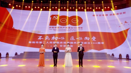 6月21日下午,阜阳市第二人民医院在市广播电视台演播大厅成功举办庆祝建党100周年文艺演出活动。院党委书记丰效寺、院长韩明锋及院领导班子全体成员,医院职工代表,退休老领导、老专家代表在现场观看了演出。市卫生健康委、市医疗保障局、市市场监督管理局、市妇女联合会、共青团阜阳市委员会、市科协技术局阜阳师范大学等有关部门负责同志受邀请出席并观看演出活动。