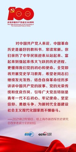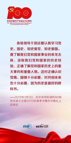 中国共产党的党史就是一部中国共产党人初心不改、矢志不渝,带领人民前仆后继、奋发进取的奋斗史。学懂弄通党史中的重要事件、会议、文件、人物,就能更深入理解为什么党能领导人民在历史的洪流中屹立不倒、奋勇向前。 党的十八大以来,习近平总书记在不同场合多次强调,广大党员要以学习党的历史为重点,做到知史爱党、知史爱国,在学习领悟中坚定理想信念,在奋发有为中践行初心使命。 今年是中国共产党成立100周年。央视网《联播+》特梳理总书记关于知史爱党的重要论述,与您一起坚定理想信念,不断增强守初心、担使命的思想自觉和行动自觉。 |