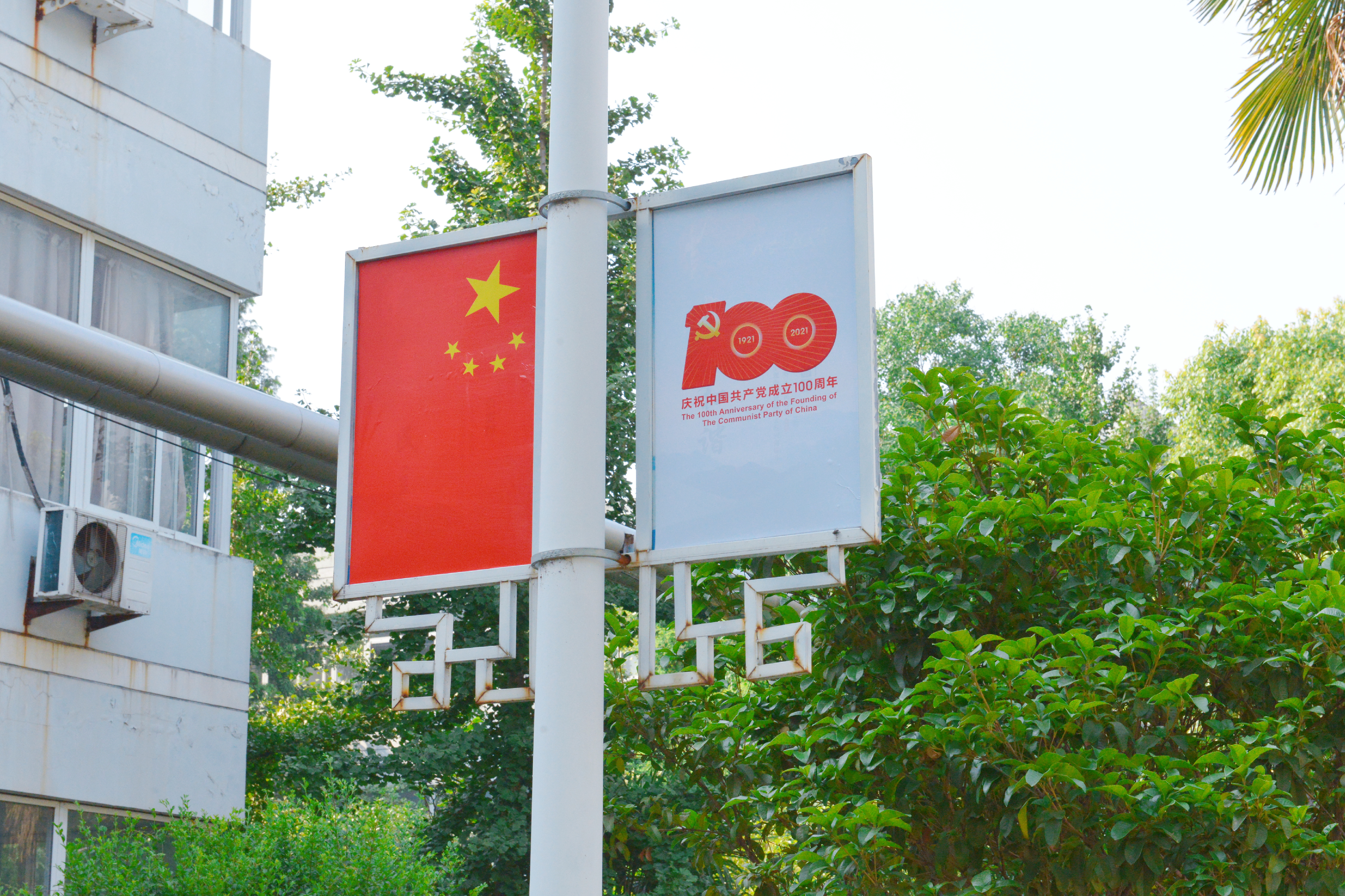 一进医院大门,“奋斗百年路 启航新征程,热烈庆祝中国共产党成立100周年”和“以习近平新时代中国特色社会主义思想为指导,向着第二个百年奋斗目标和中华民族伟大复兴的中国梦奋勇前进!”墙体宣传牌映入眼帘;正对着医院北大门的钢琴楼上,醒目的党旗和两边的各五面红旗迎风飘扬;进入院内的康复大道,路边灯杆上悬挂的国旗和庆祝建党100周年活动标识随处可见,营造出浓浓的喜庆氛围。
