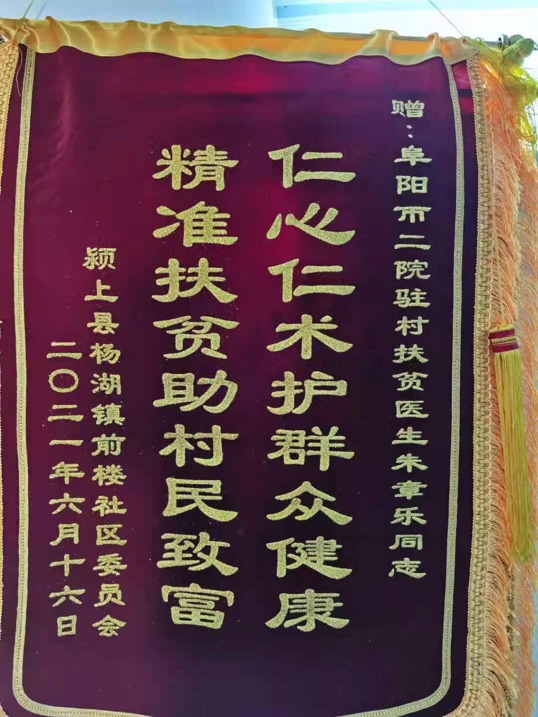 7月9日,阜阳市第二人民医院全科医学科主治医生朱章乐圆满完成了为期两年的驻村健康扶贫工作。