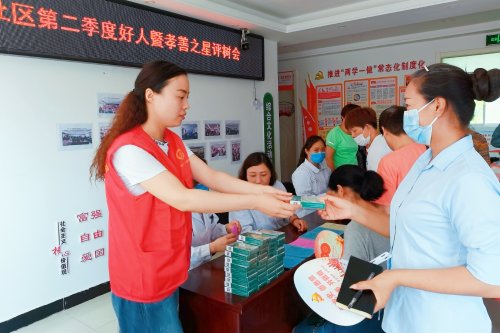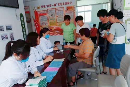 讲座结束后,医护人员和志愿者还为参与活动的群众测量血压,发放计生用品和健康宣传手册。