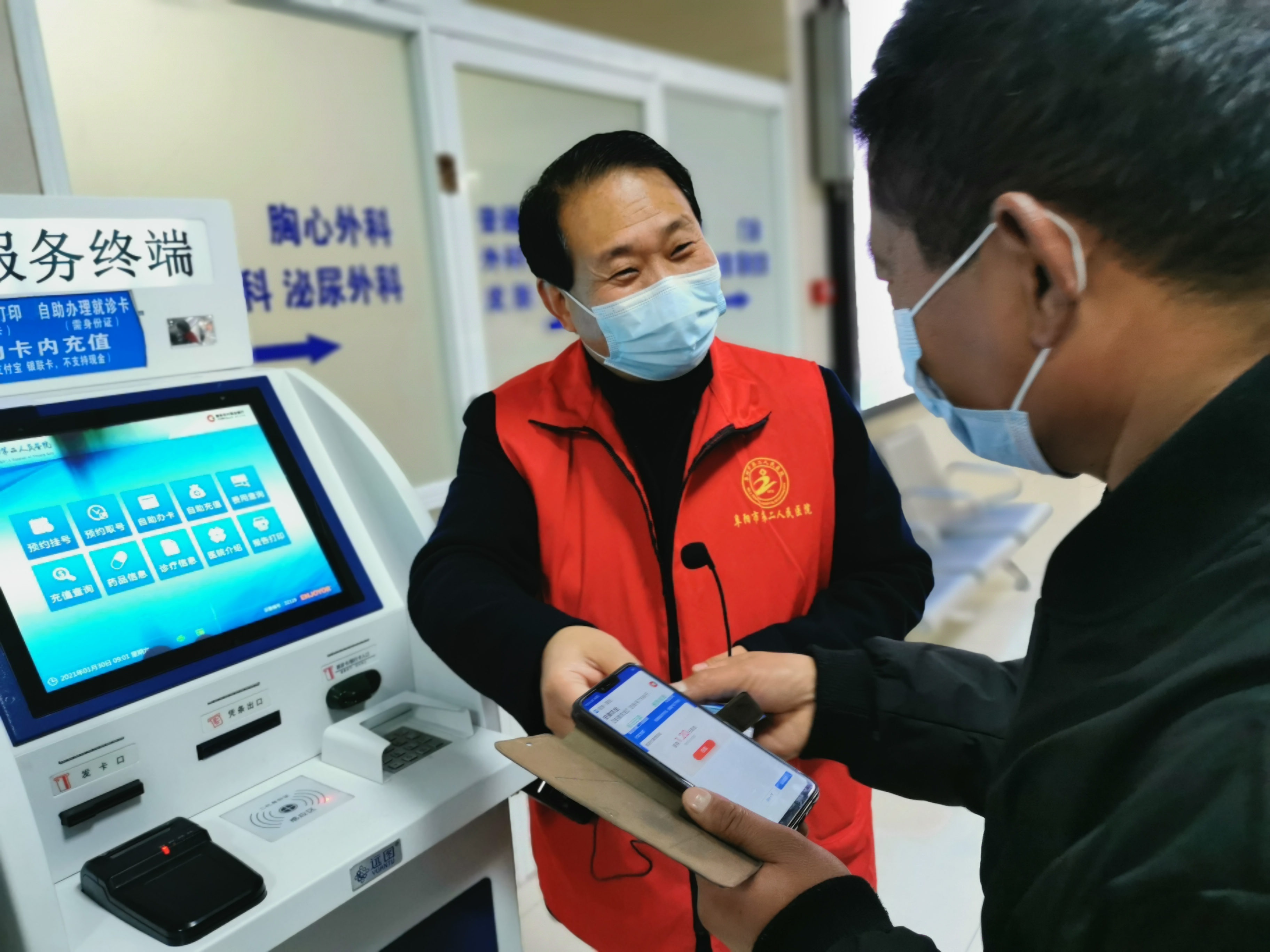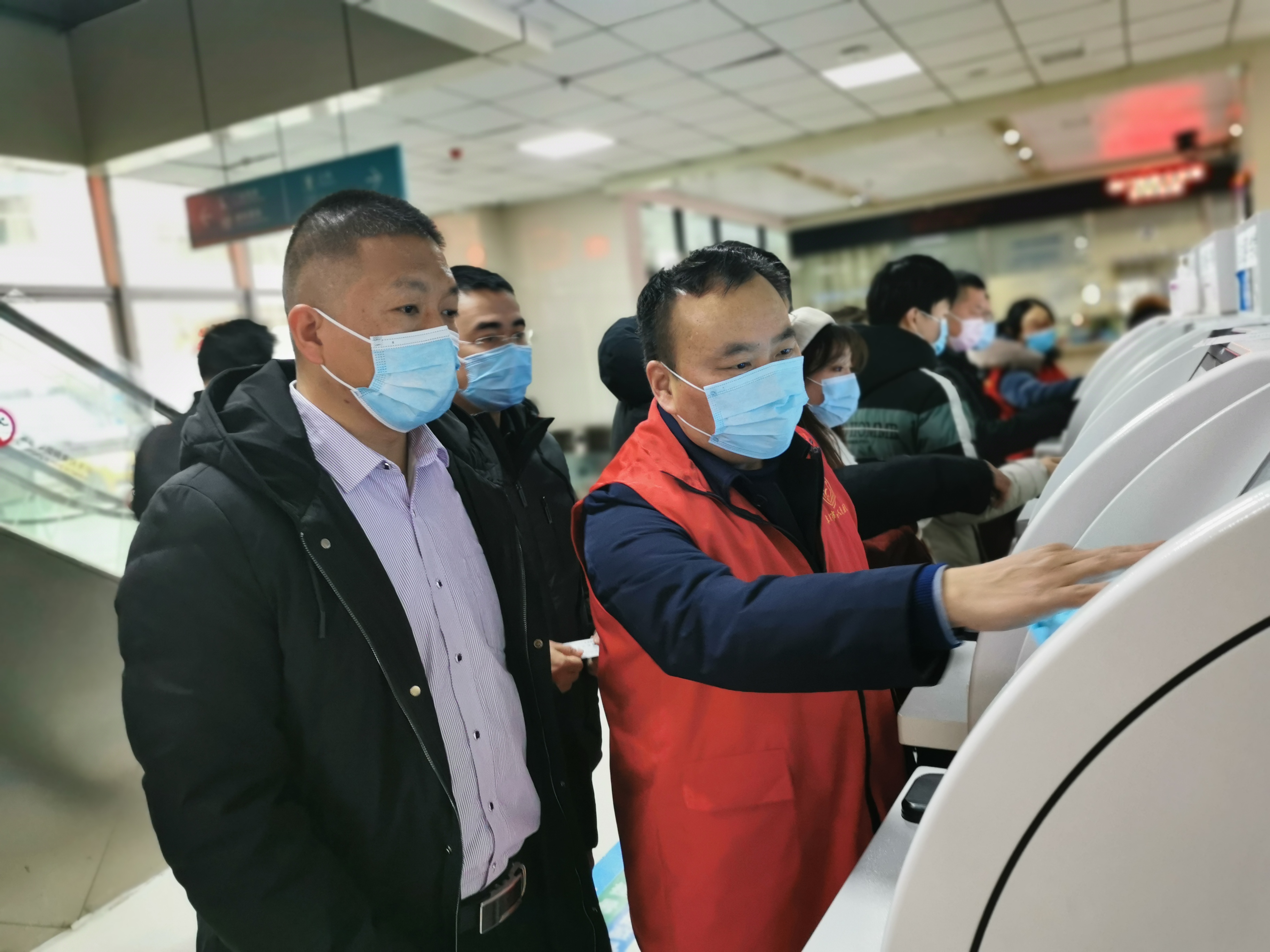 2021年春节期间,返乡务工人员较为集中,门诊就诊量陡然上升,为应对就诊人数上升带来疫情防控压力,医院机关党支部成立“党员志愿者服务队”,利用年休及周末的时间,在门诊、CT室、核酸监测点等人员密集地点开展志愿服务。院领导带头穿上红马甲,走上志愿服务岗位,疏导就诊患者,帮助患者办理自助就诊卡,指导患者挂号等。